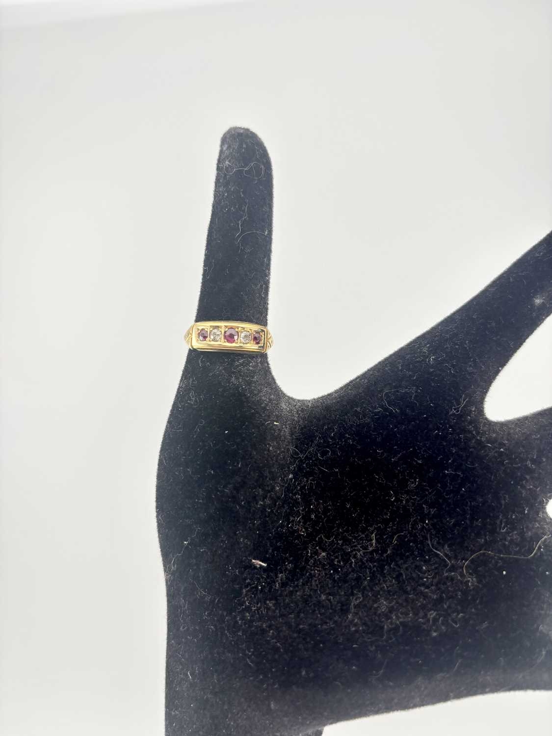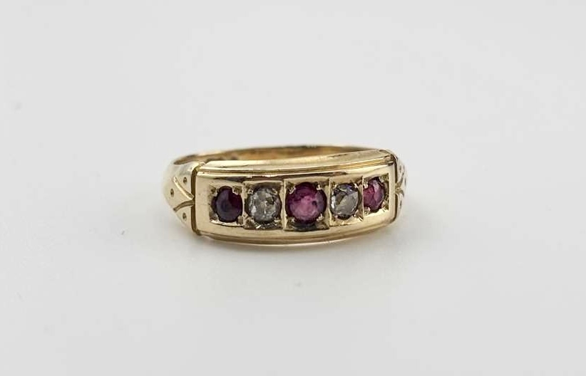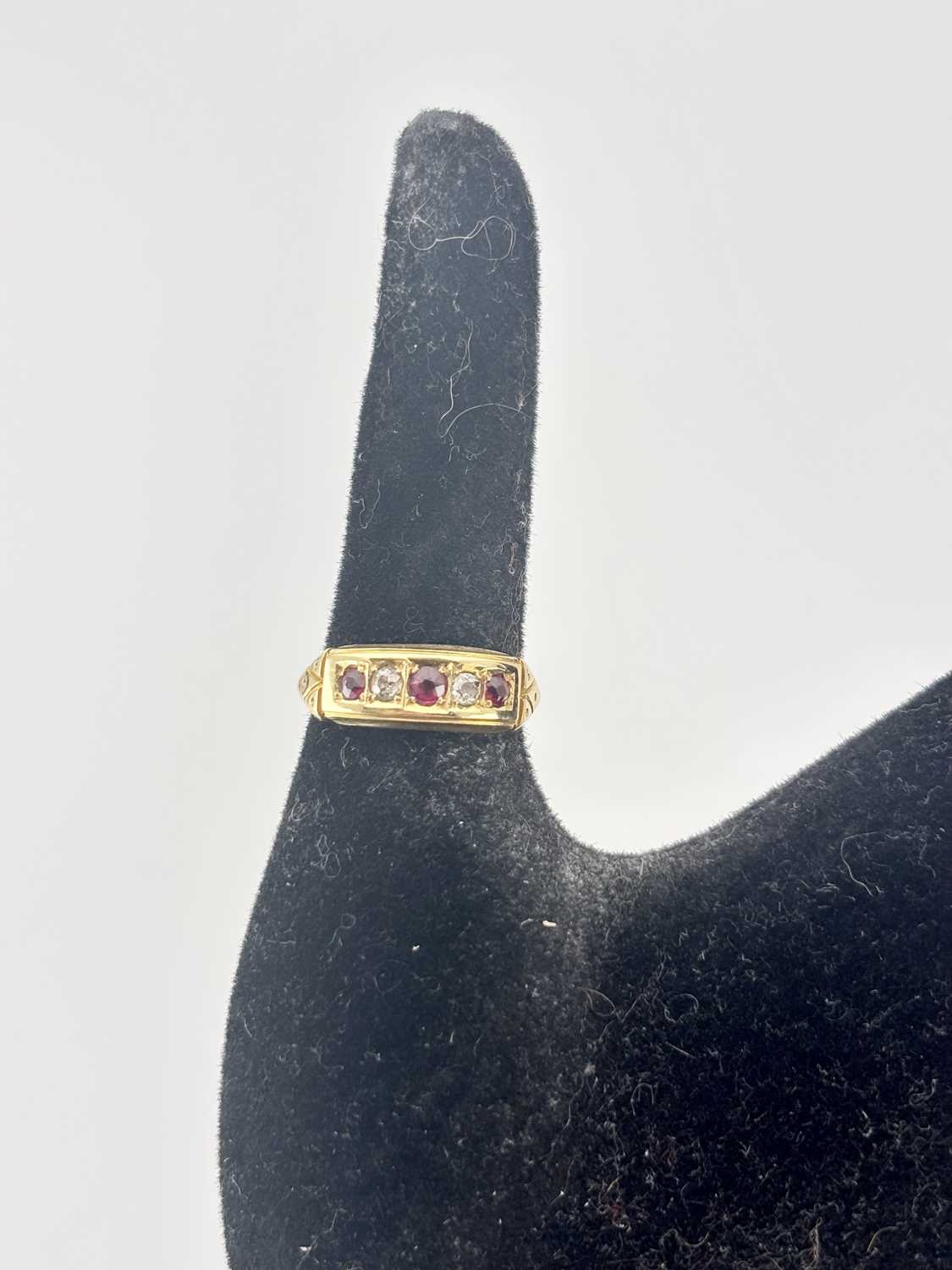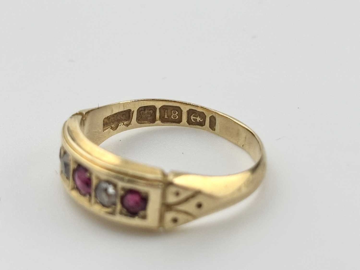 A late Victorian 18ct gold ruby and diamond ring, gross weight 3.7grams (1)