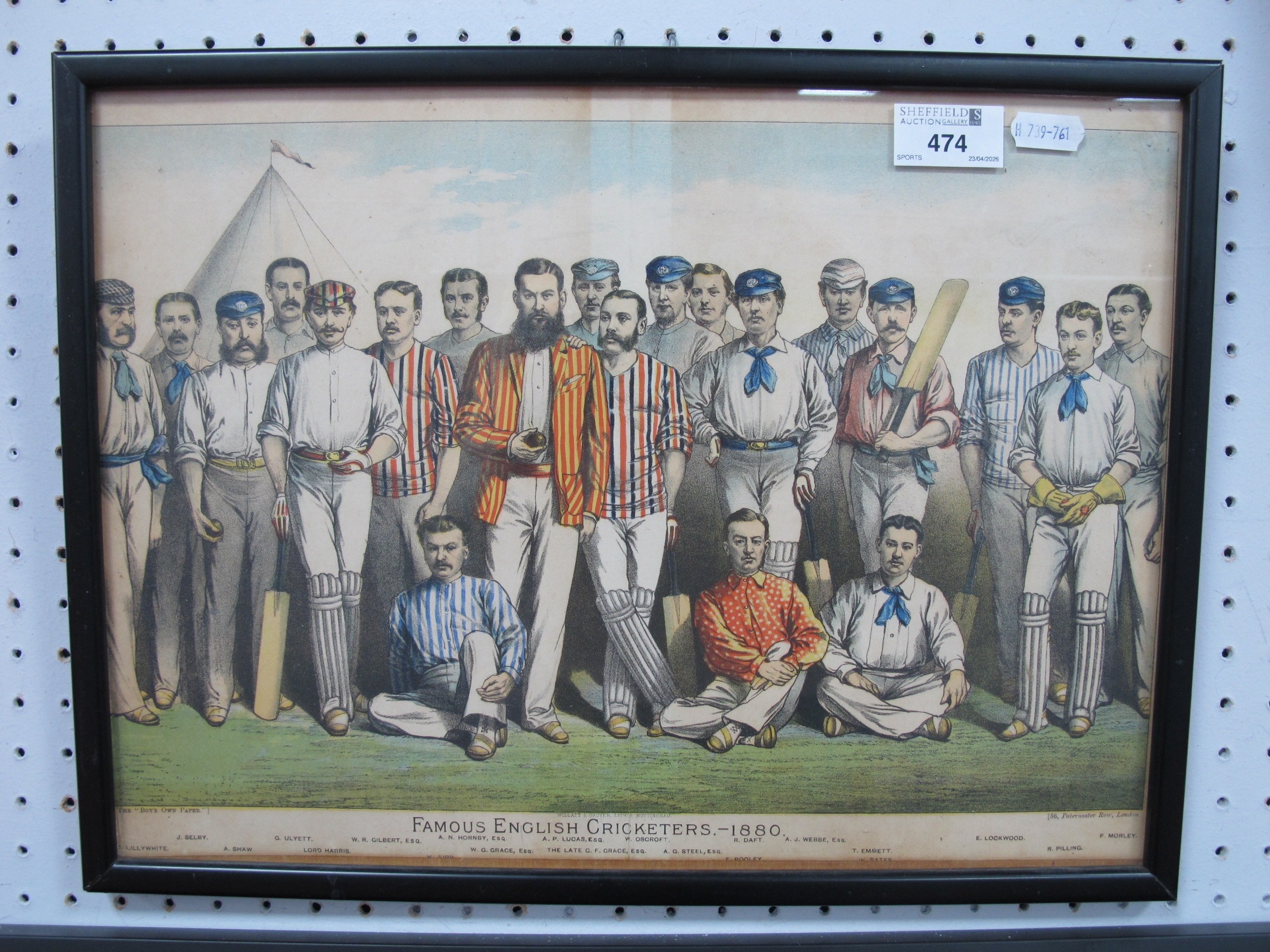 Famous English Cricketers 1880, Willart & Grover Print for The Boys Own Paper, framed, overall 30 x 40.5cm.