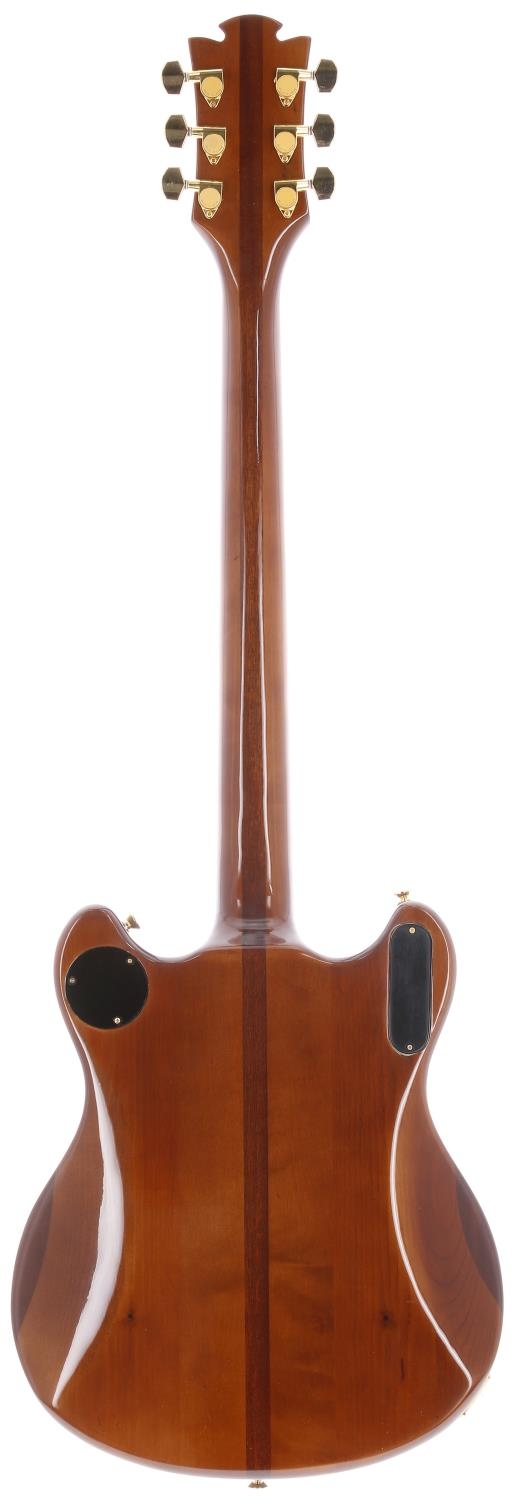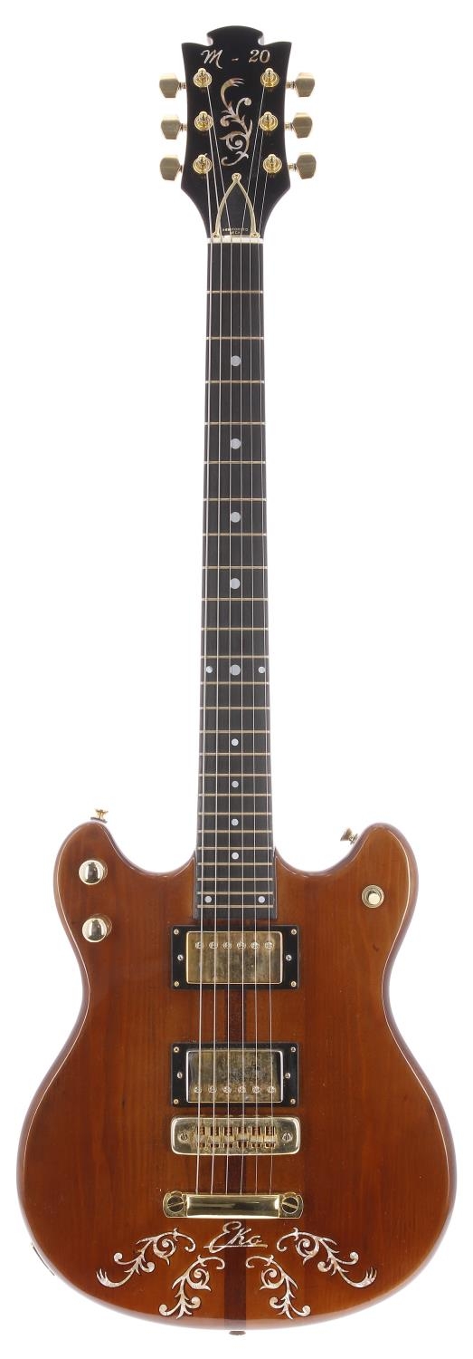 Roberto Bradoni Custom Eko M-20 electric guitar, made in England using original Eko parts; Body: walnut finish with pearl Eko inlay below stop bar; Neck: good, neck through; Fretboard: ebony; Frets: good; Electrics: working; Hardware: generally good, some loss to gold plating; Case: Soundsation hard case; Weight: 4.11kg; Overall condition: good