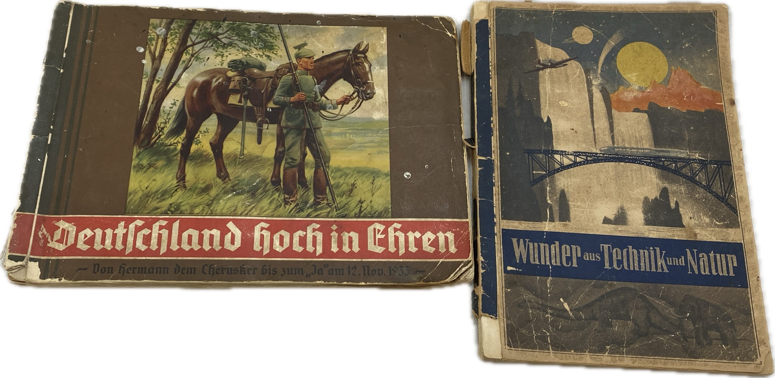 Two vintage German books ' Deutschland hoch in Ehren: Von Hermann dem Cherusker bis zum' 1933 and ' Wunder aus Technik und Natur' , condition as found.