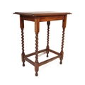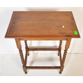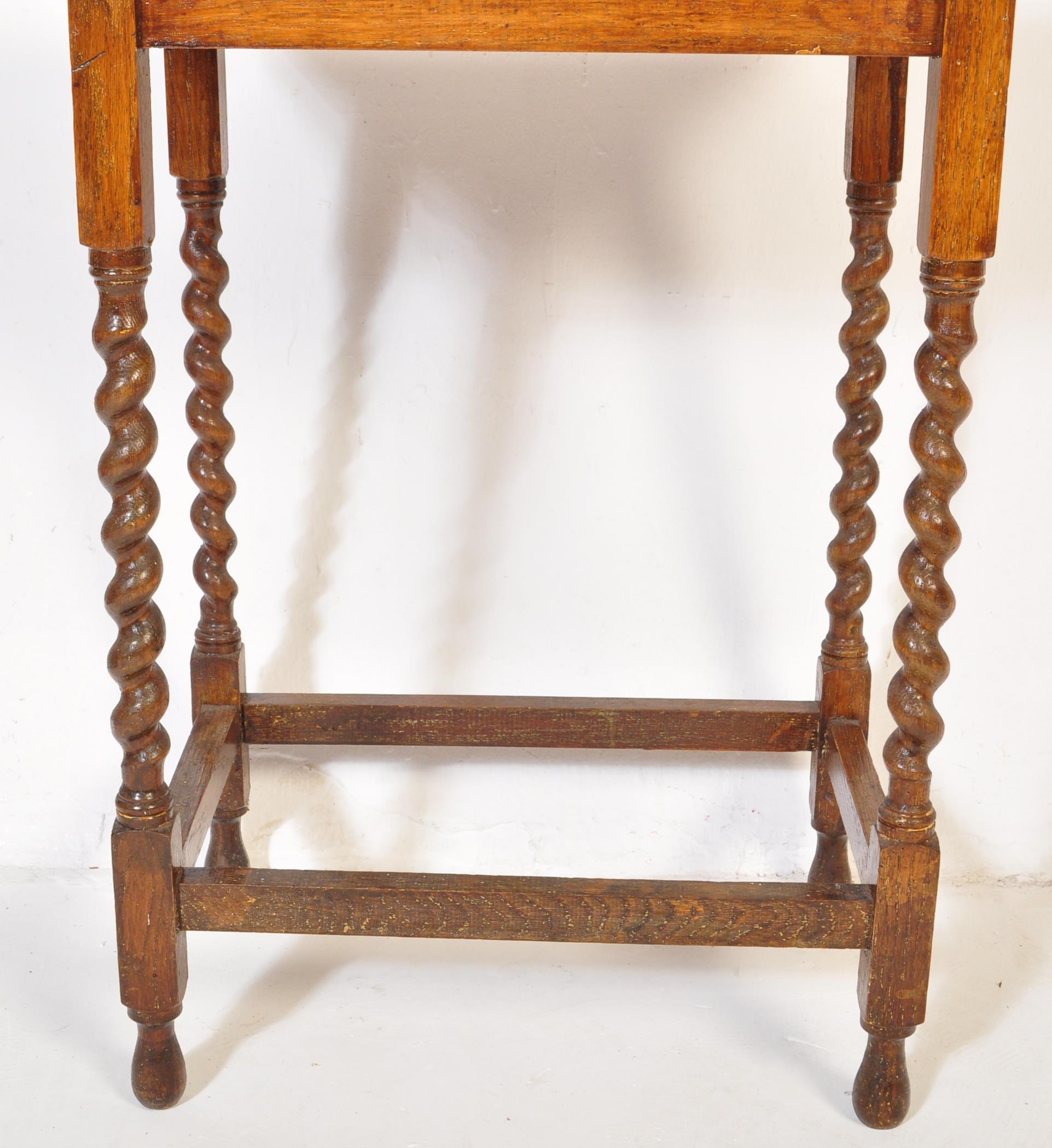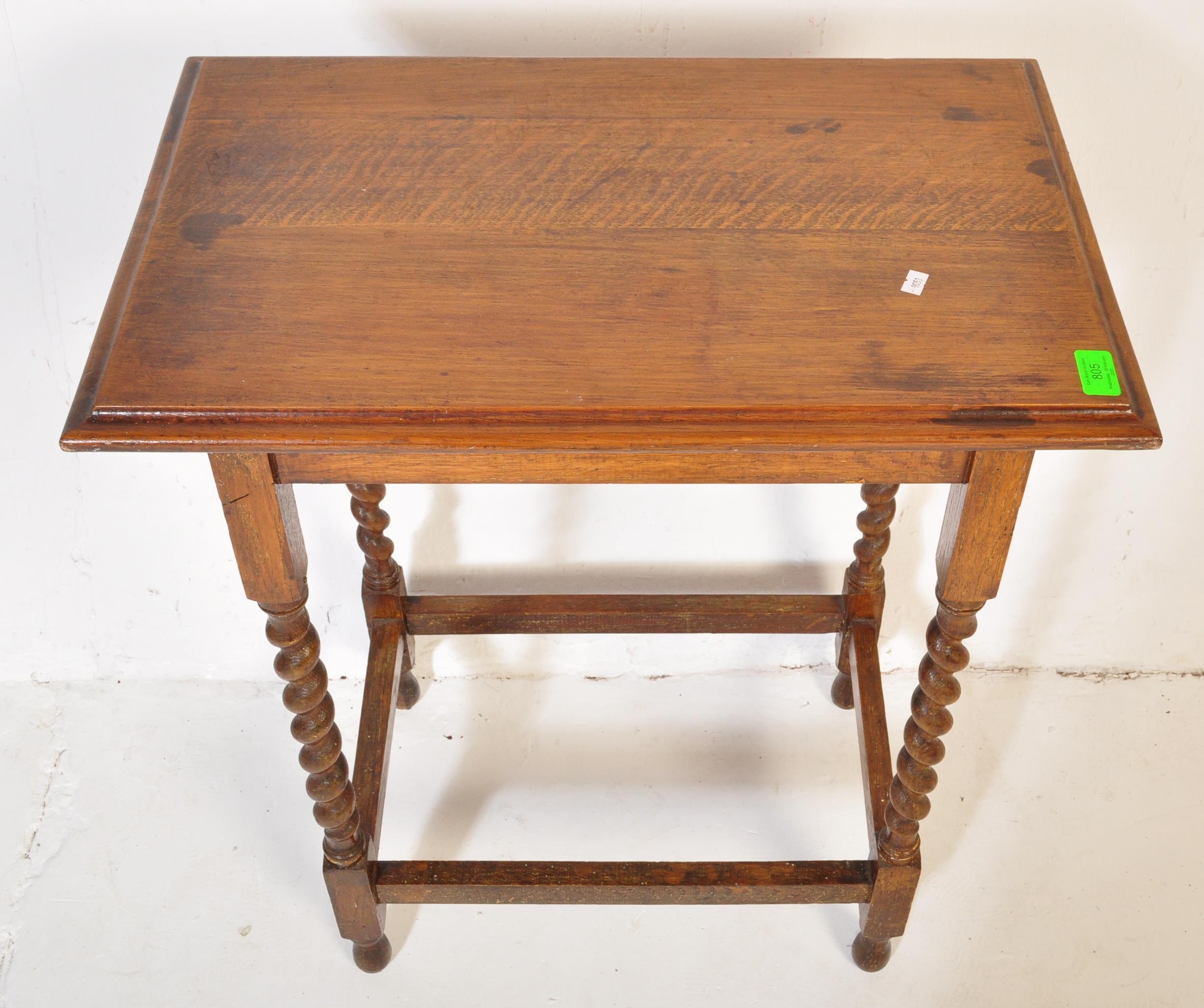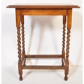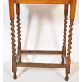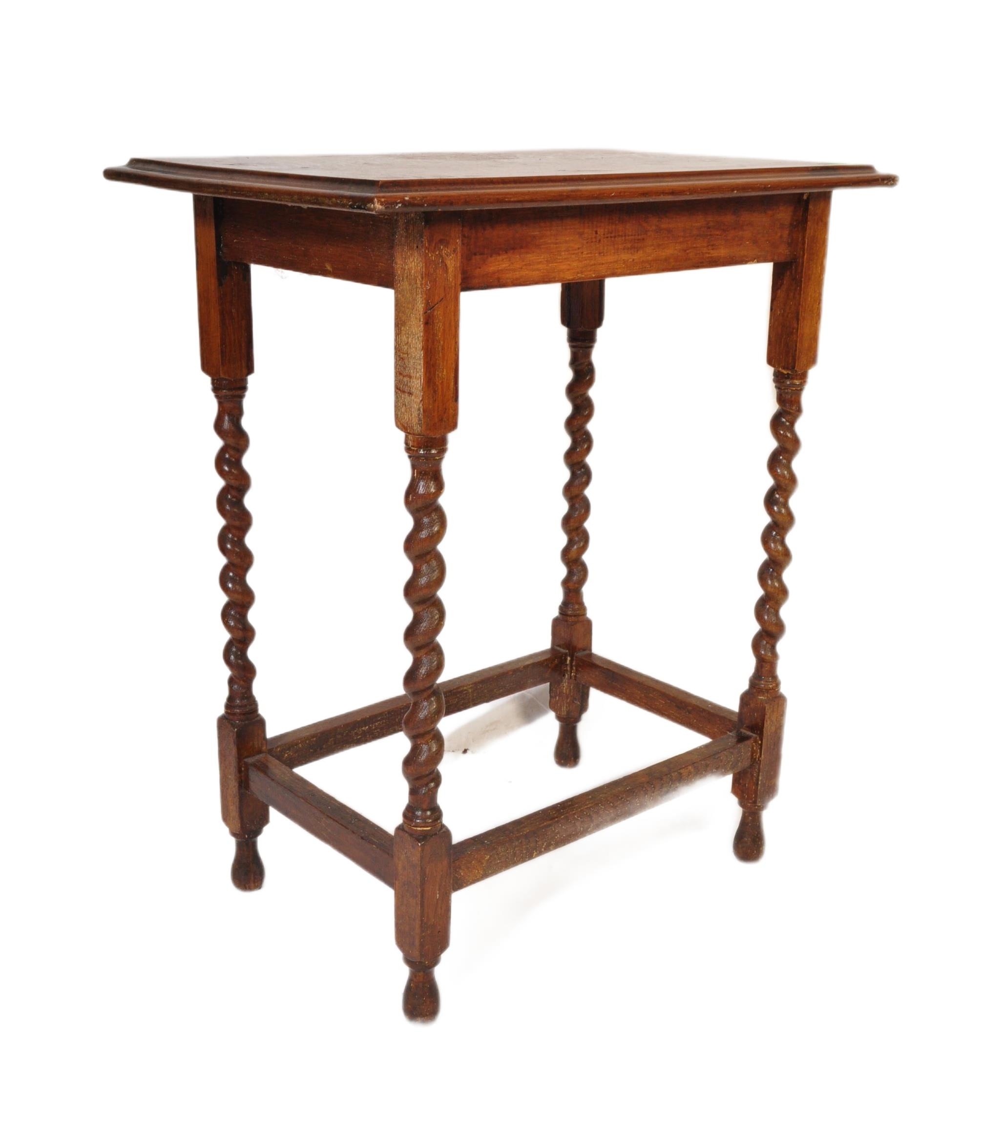 A vintage early 20th Century circa 1920s barely twist oak occasional hall side table. Having a flared rectangular top with barley twist legs terminating in turned feet united by perimeter stretchers. Measures approx. 73cm x 61cm x 39cm.