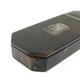 19th Century rectangular tortoiseshell snuff box, the hinged lid with silver coloured metal cartouche and mirrored interior, 8cm in length