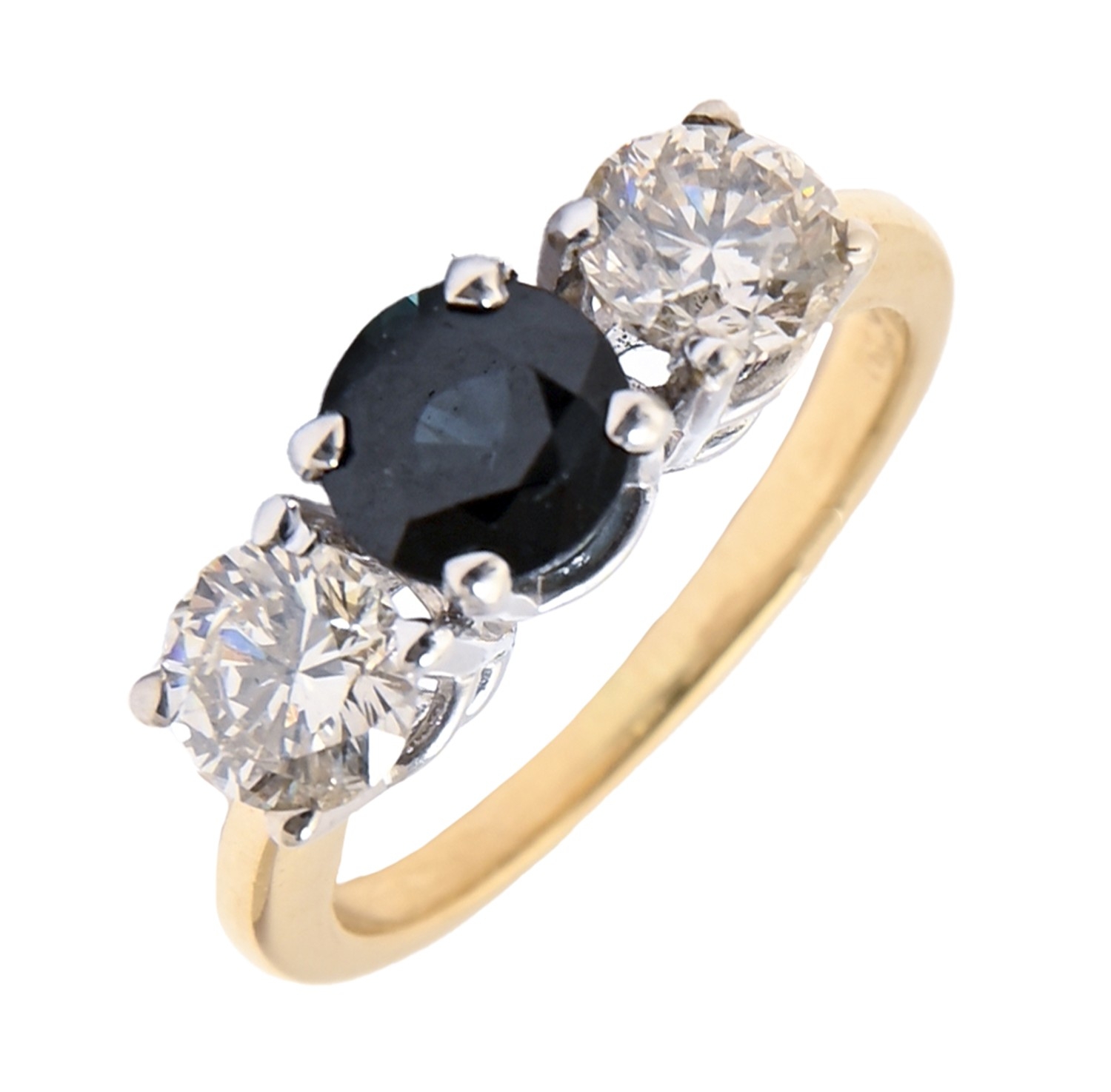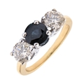 A sapphire and diamond ring, with round brilliant cut diamonds, 1.05ct, in gold marked 14K, 3.2g, size H