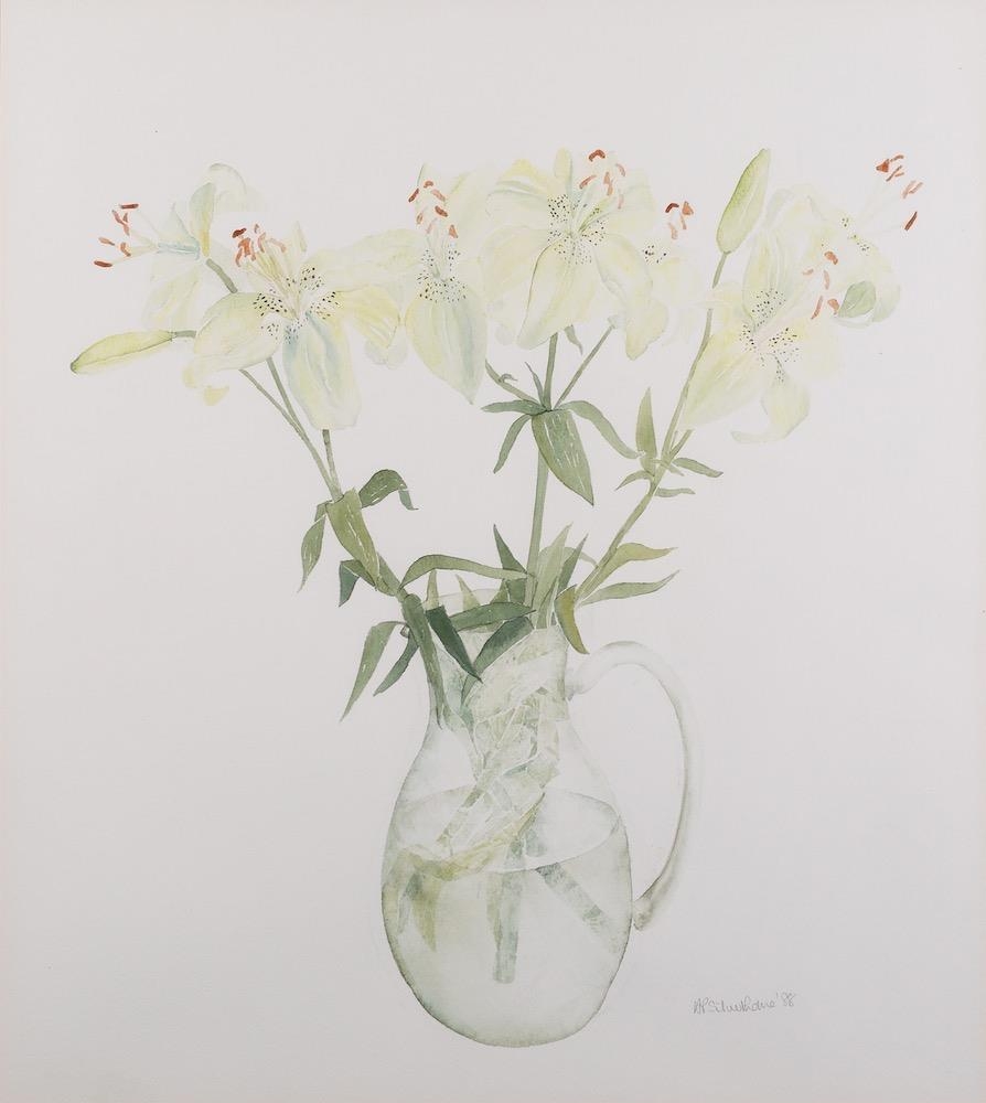 Penelope 'Penny' Silverthorne (British, 20th Century) Lillies in a Vase Watercolour on Card 43 x 50 cm Signed and dated '88 lower right