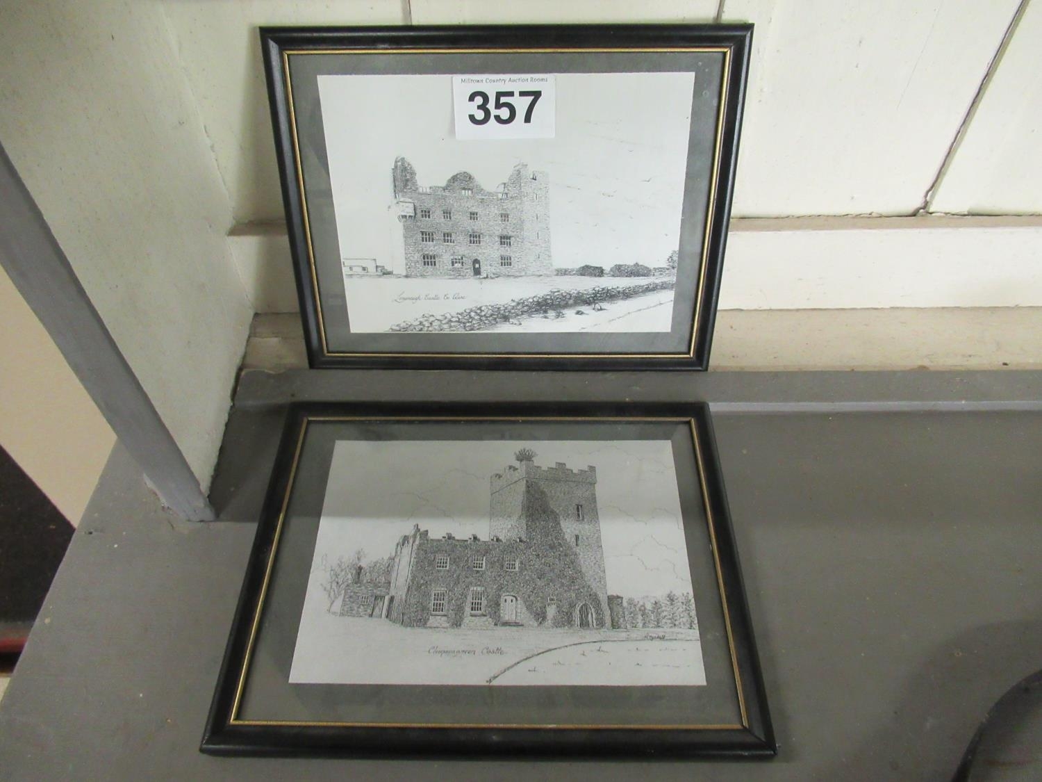 2 Castle pencil drawing prints.