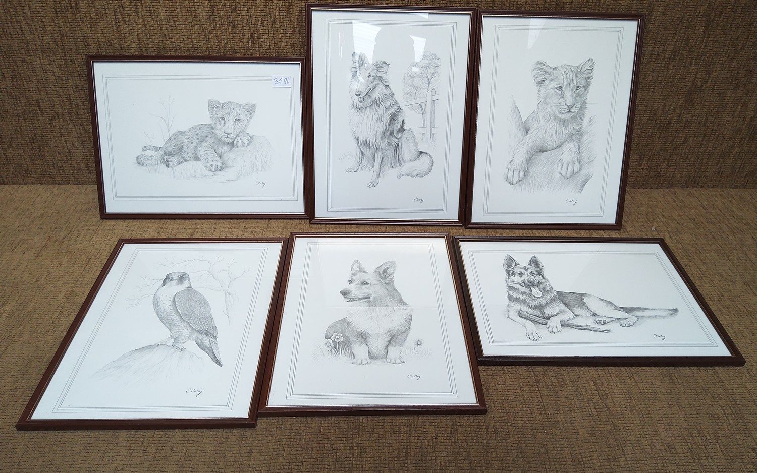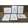 Six framed sketches by the artist C. Varley.