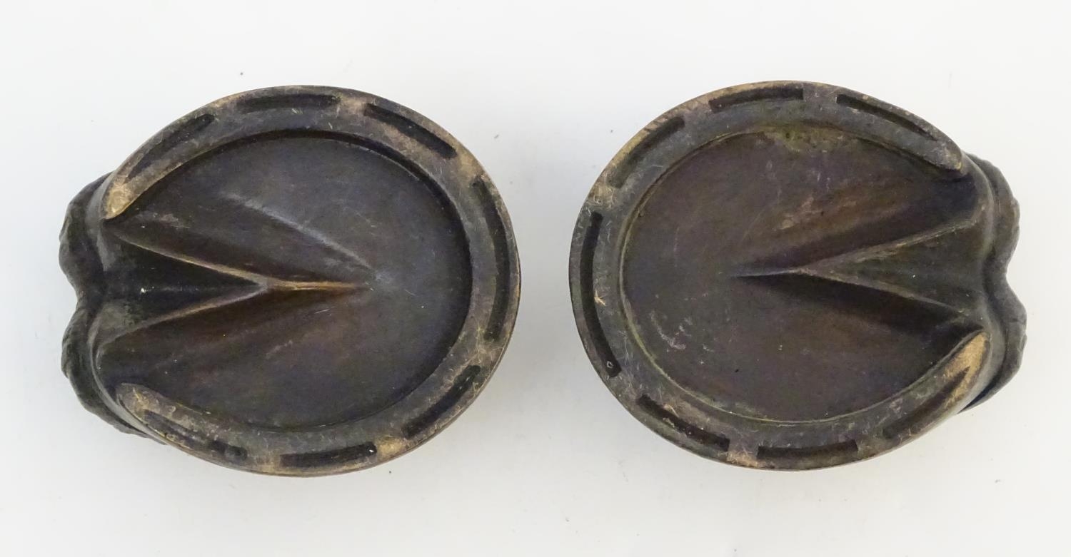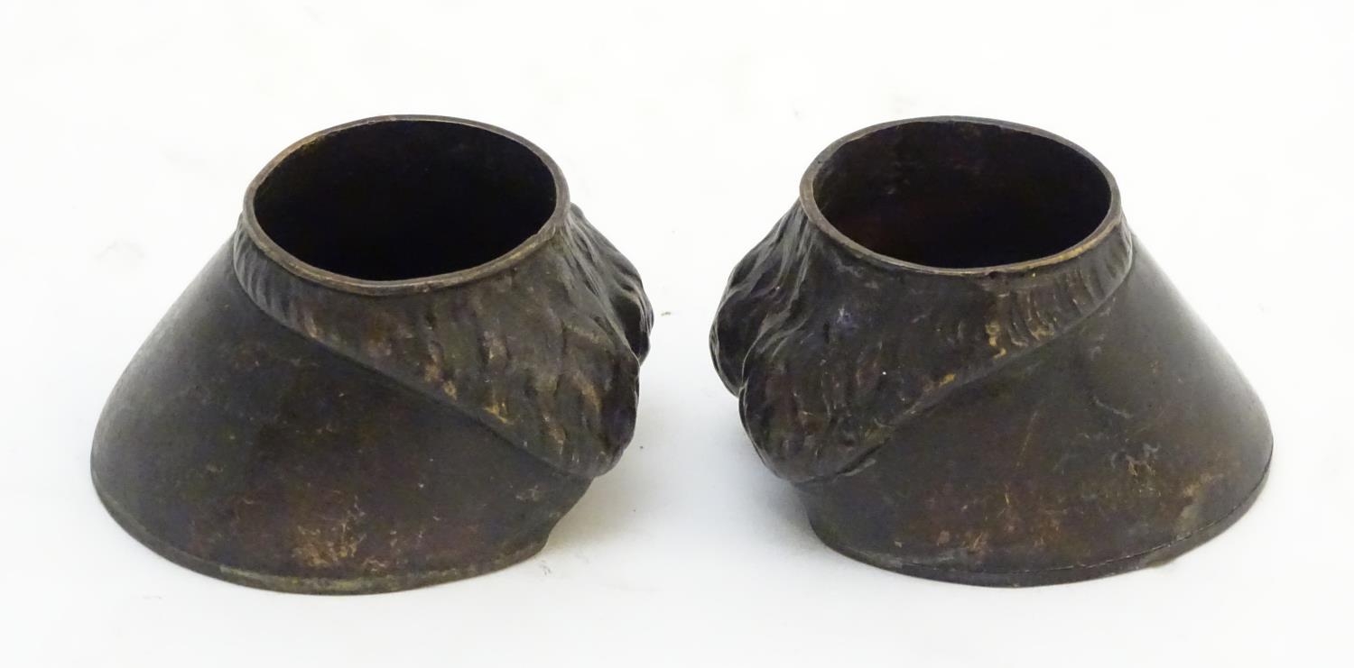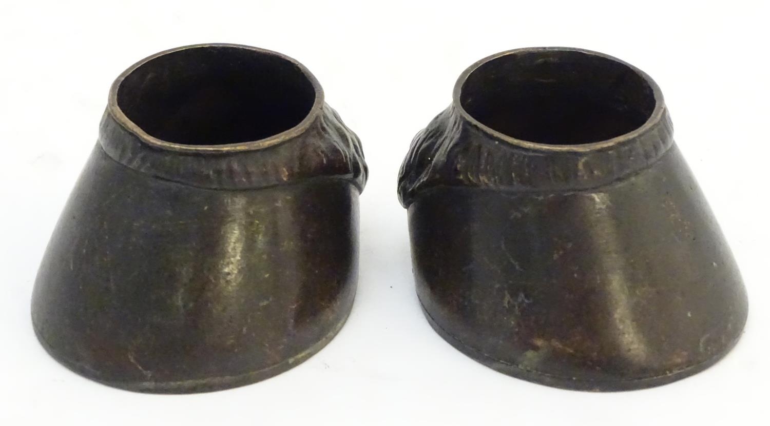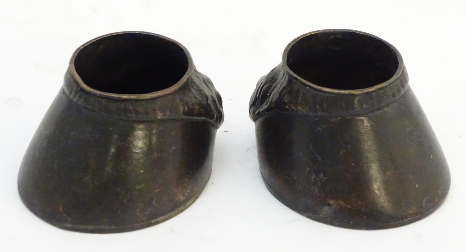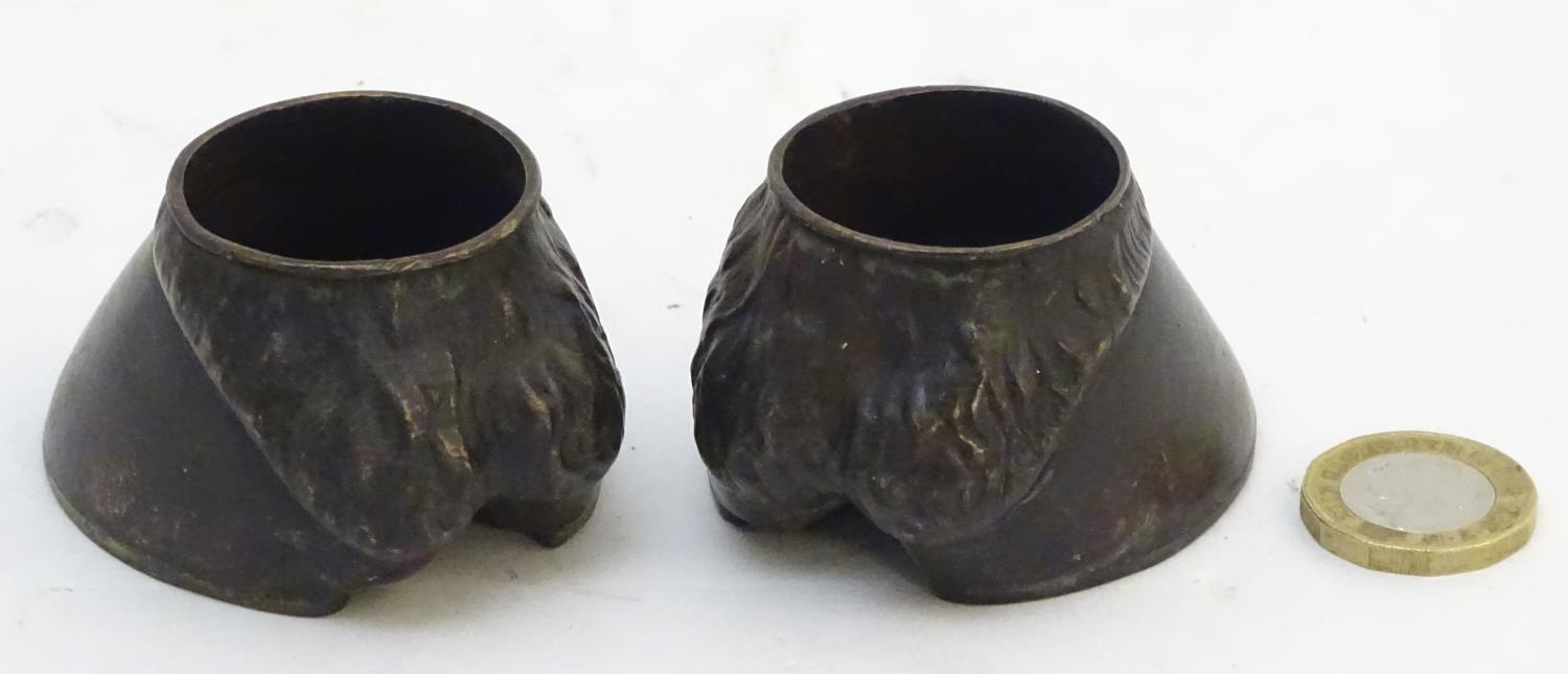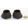 A pair of cast novelty horse hoof formed table salts. Approx. 1 1/2" high (2)