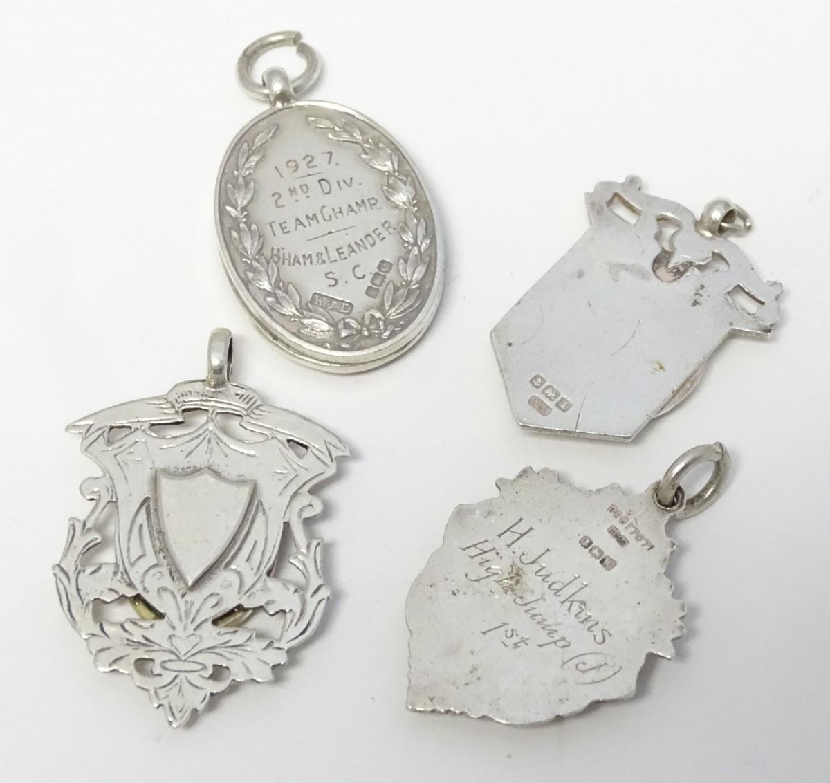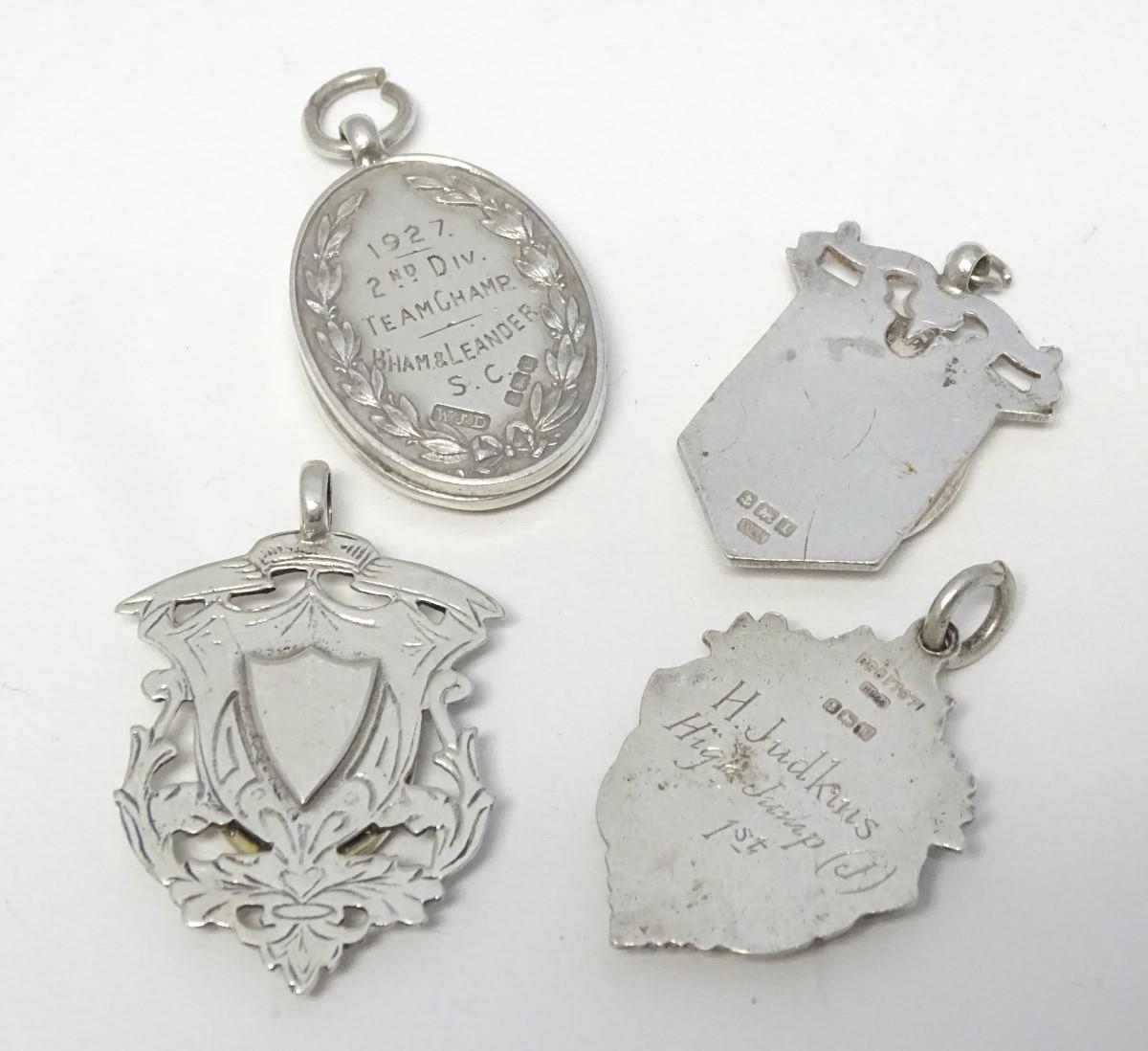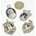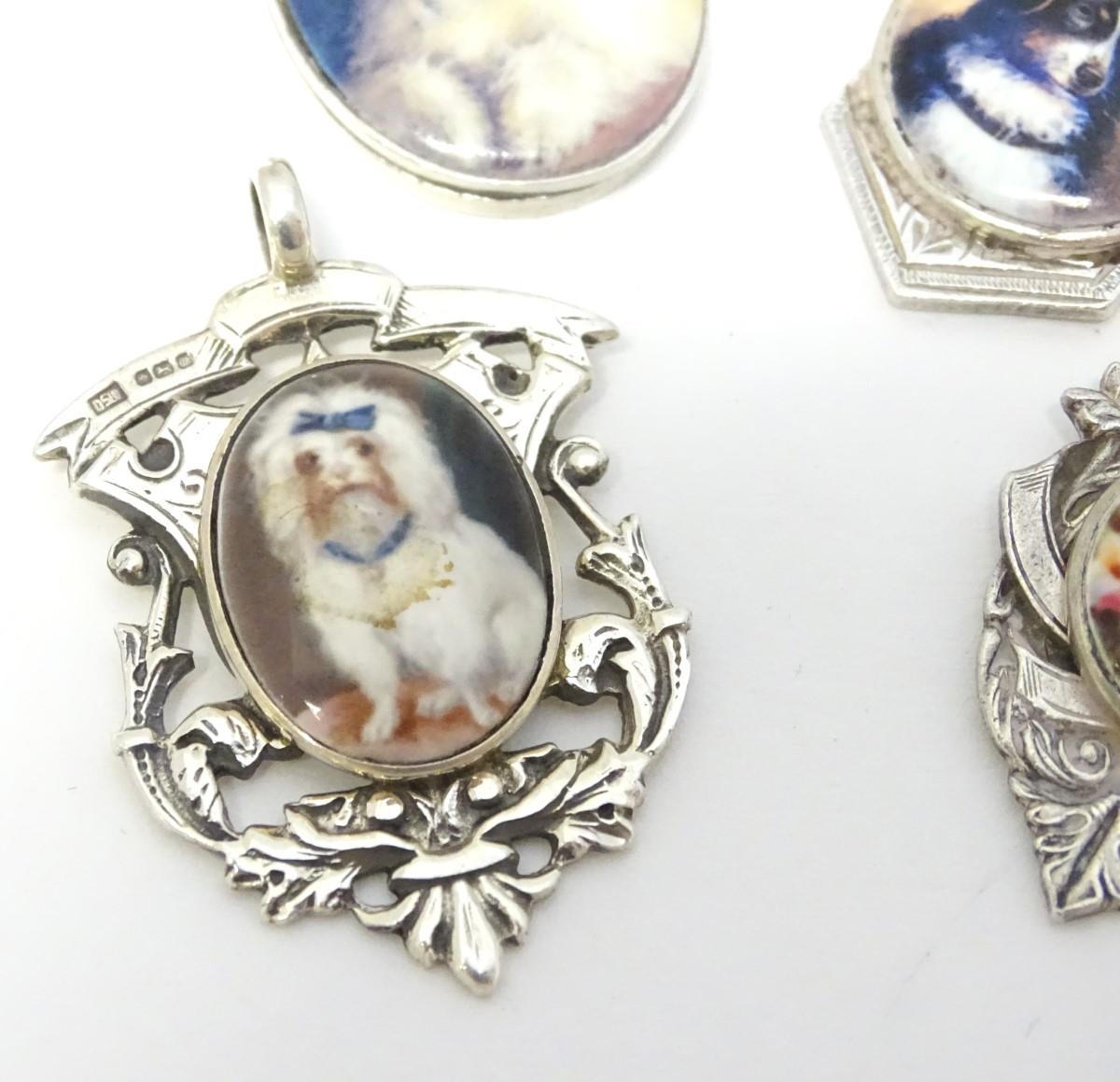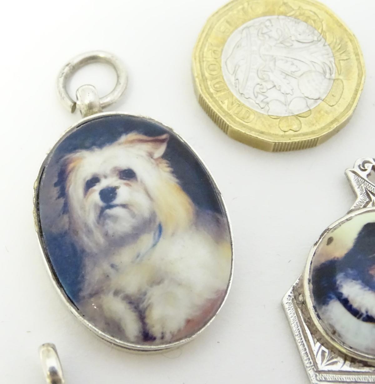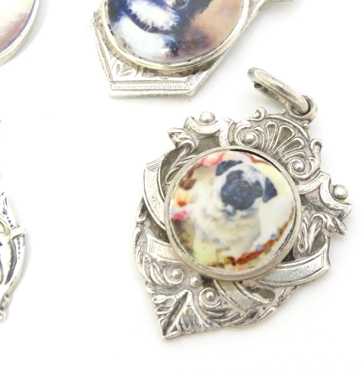 Assorted silver and silver plate fob with later applied enamel decoration depicting various dogs. (4)