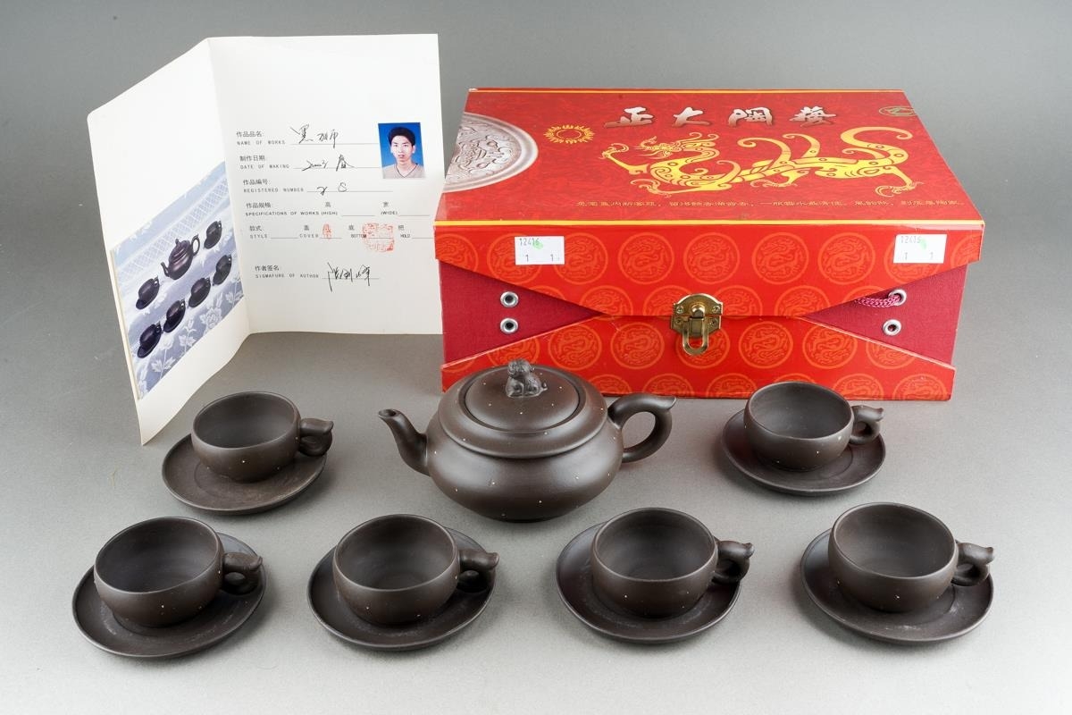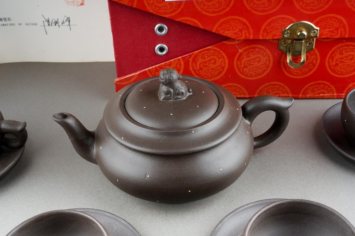 A Modern Chinese Terracotta tea set, boxed with certificate [1]