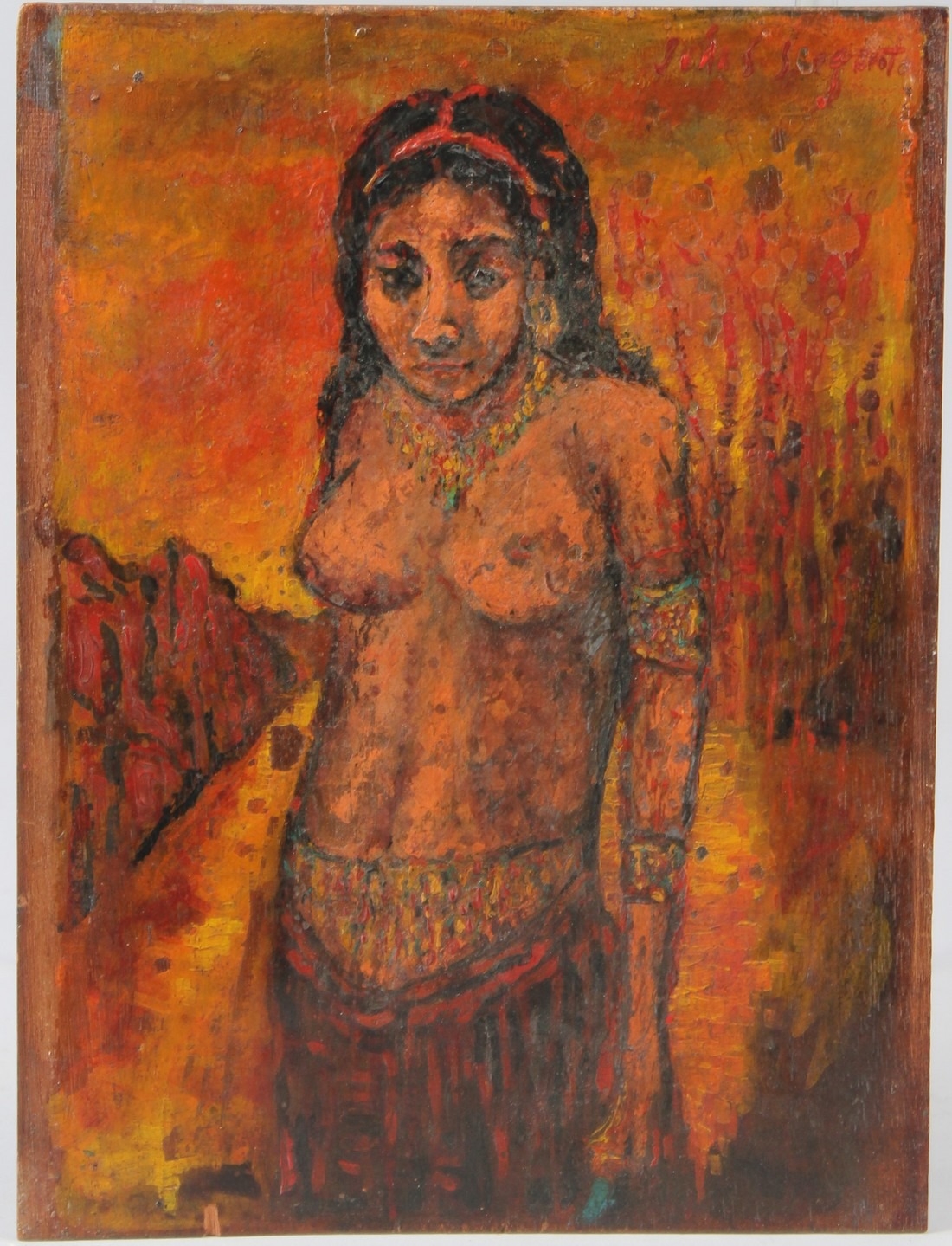SOUTH AMERICAN SCHOOL Semi naked woman oil on panel unframed 29 x 21.5cm