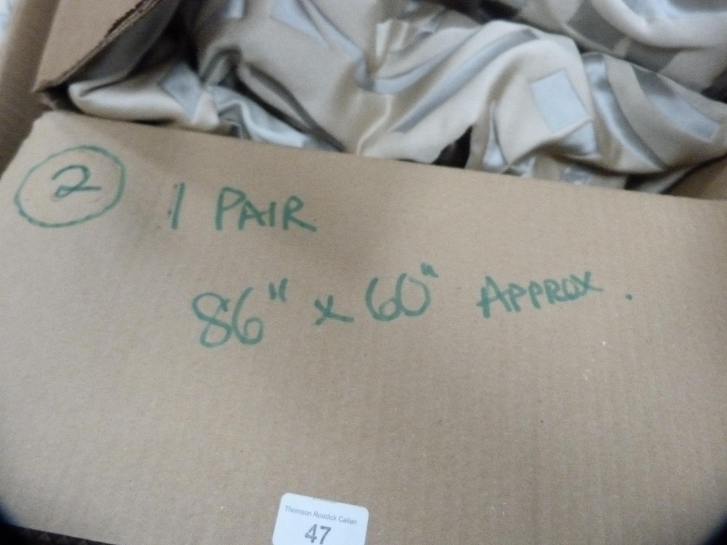 Pair of large curtains, 86in x 60in approximately.