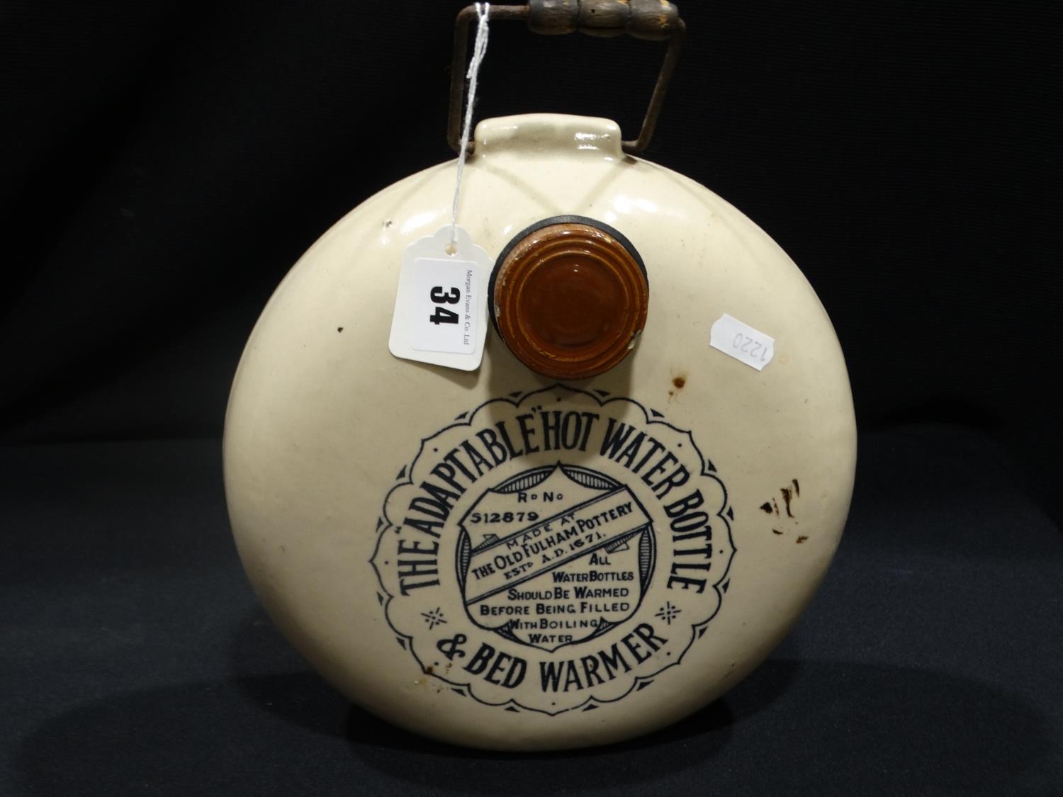 A Circular Stoneware Hot Water Bottle, Fulham Pottery