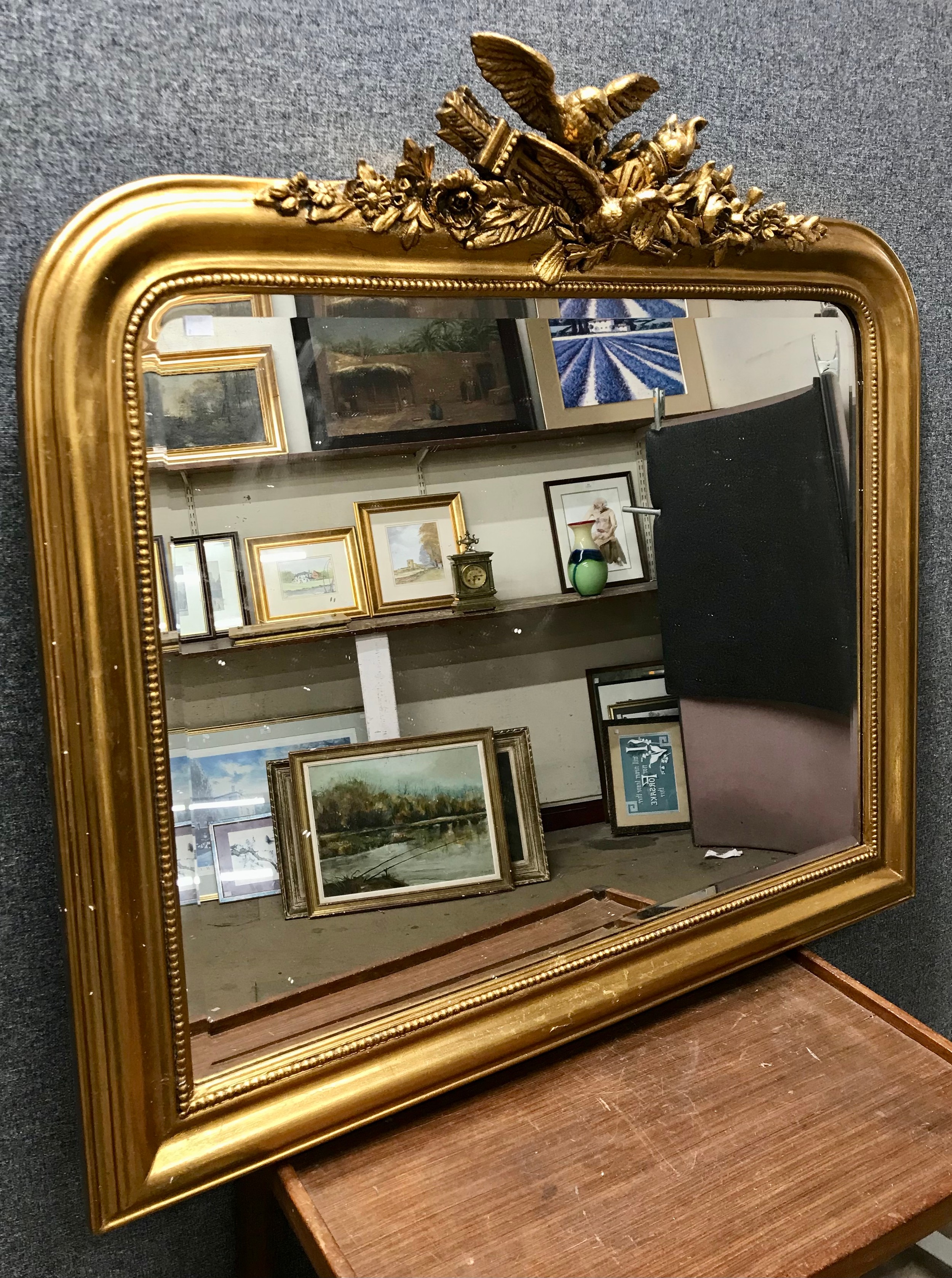 A French Louis XV style gilt framed overmantel mirror