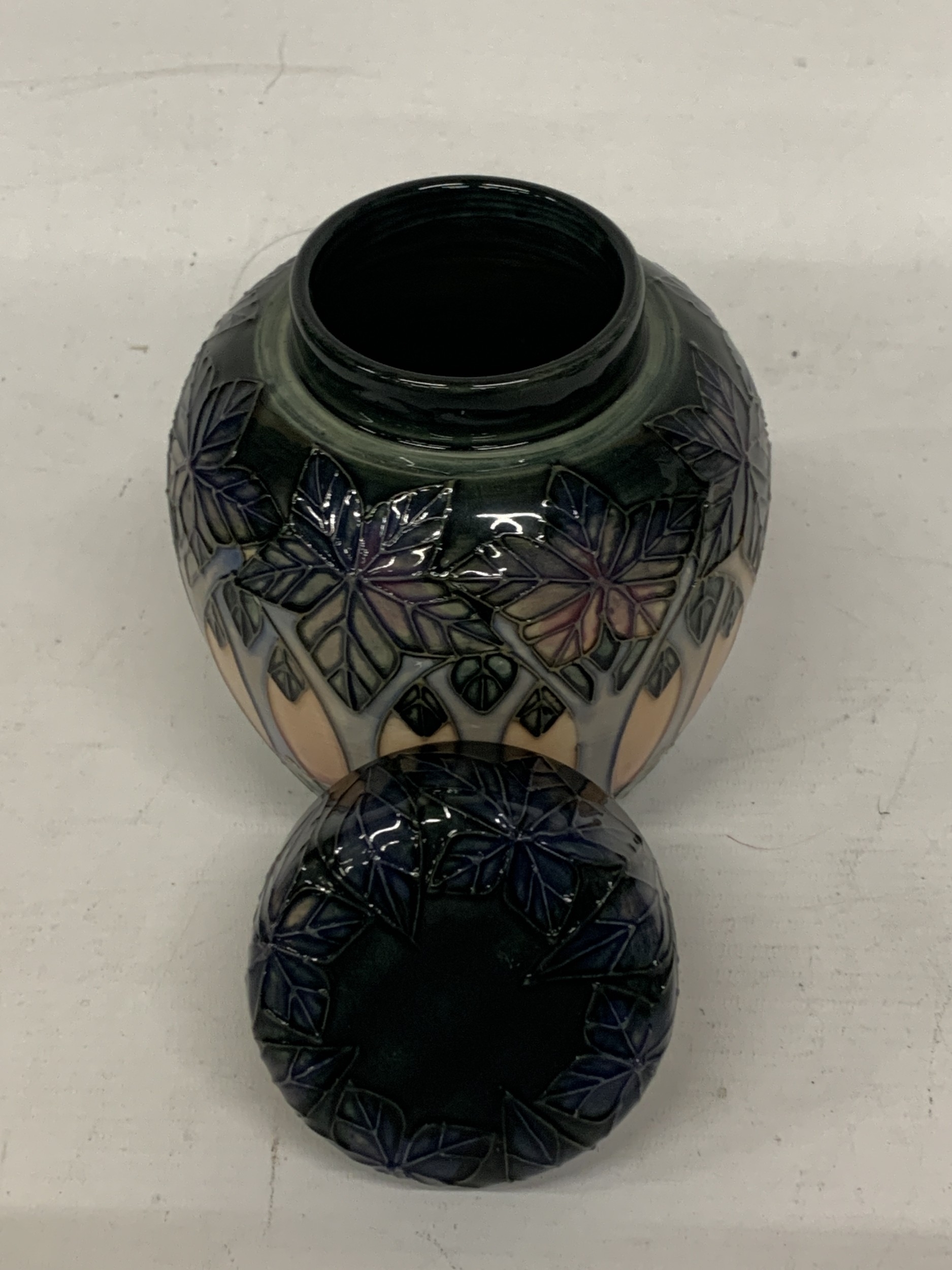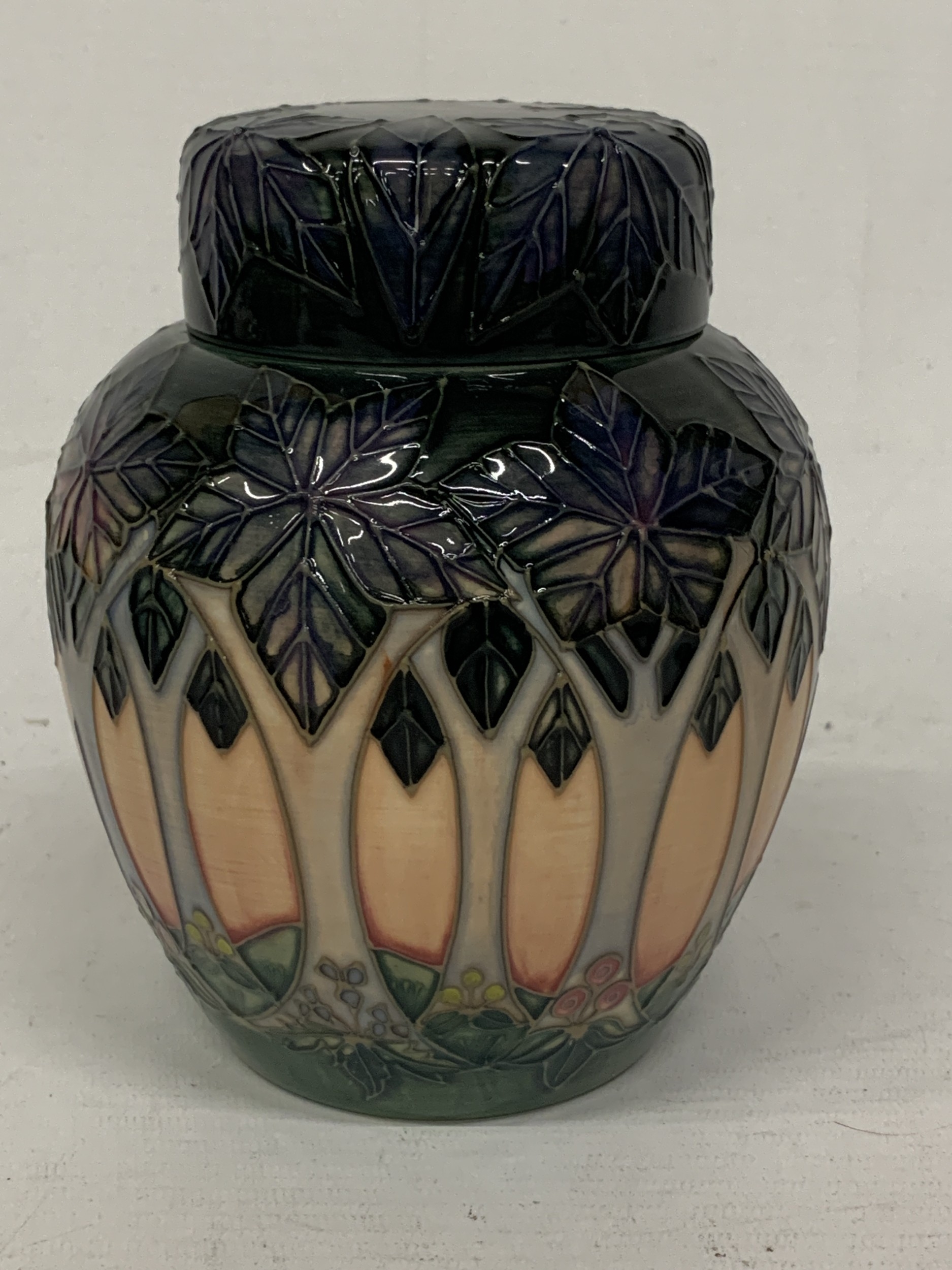 A MOORCROFT CLUNY PATTERN GINGER JAR WITH COVER, HEIGHT 16CM