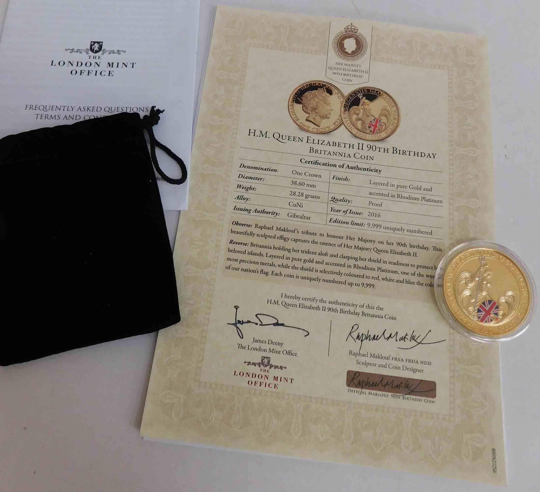 London Mint - Queen Elizabeth 90th Birthday - Britannia coin with certificate