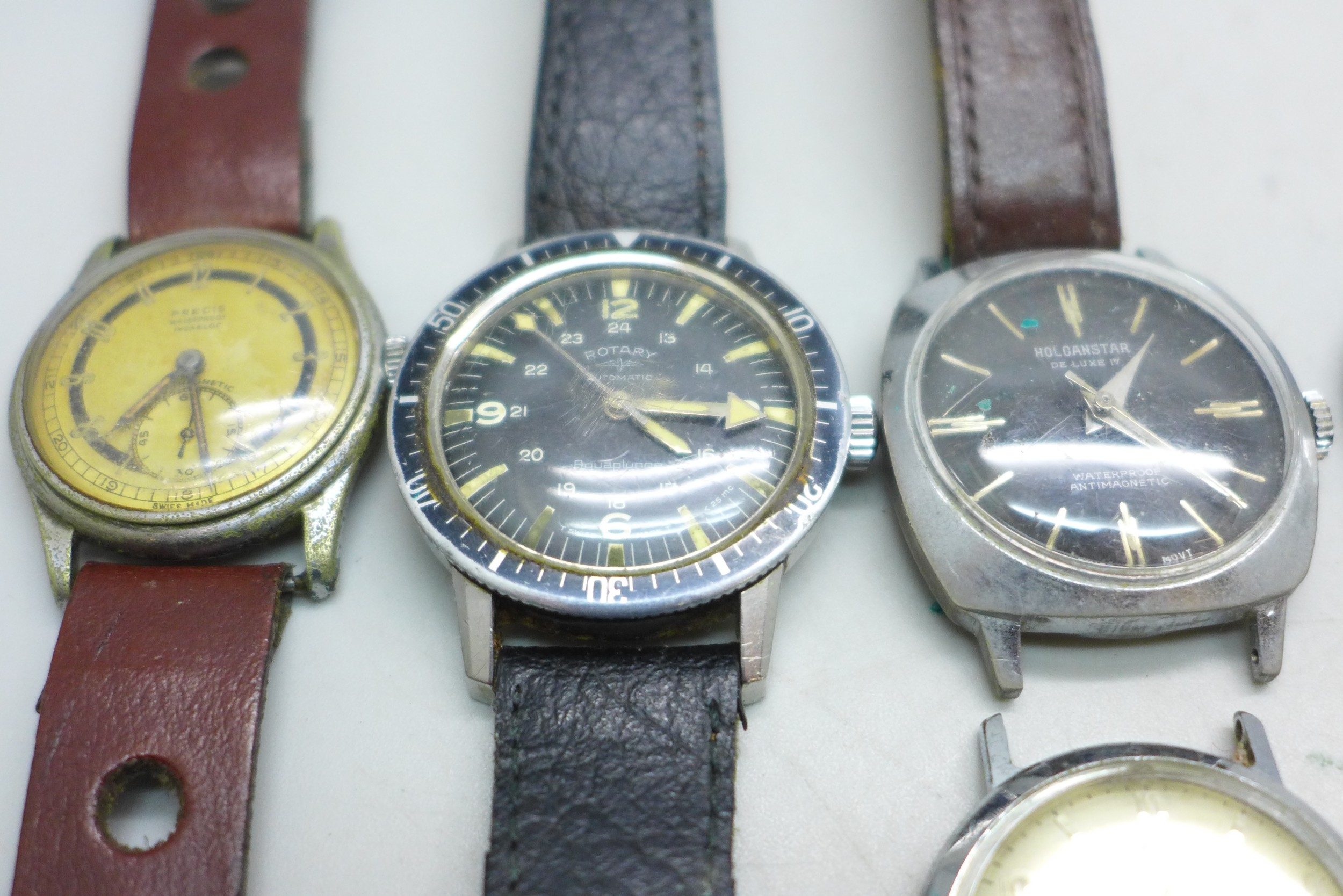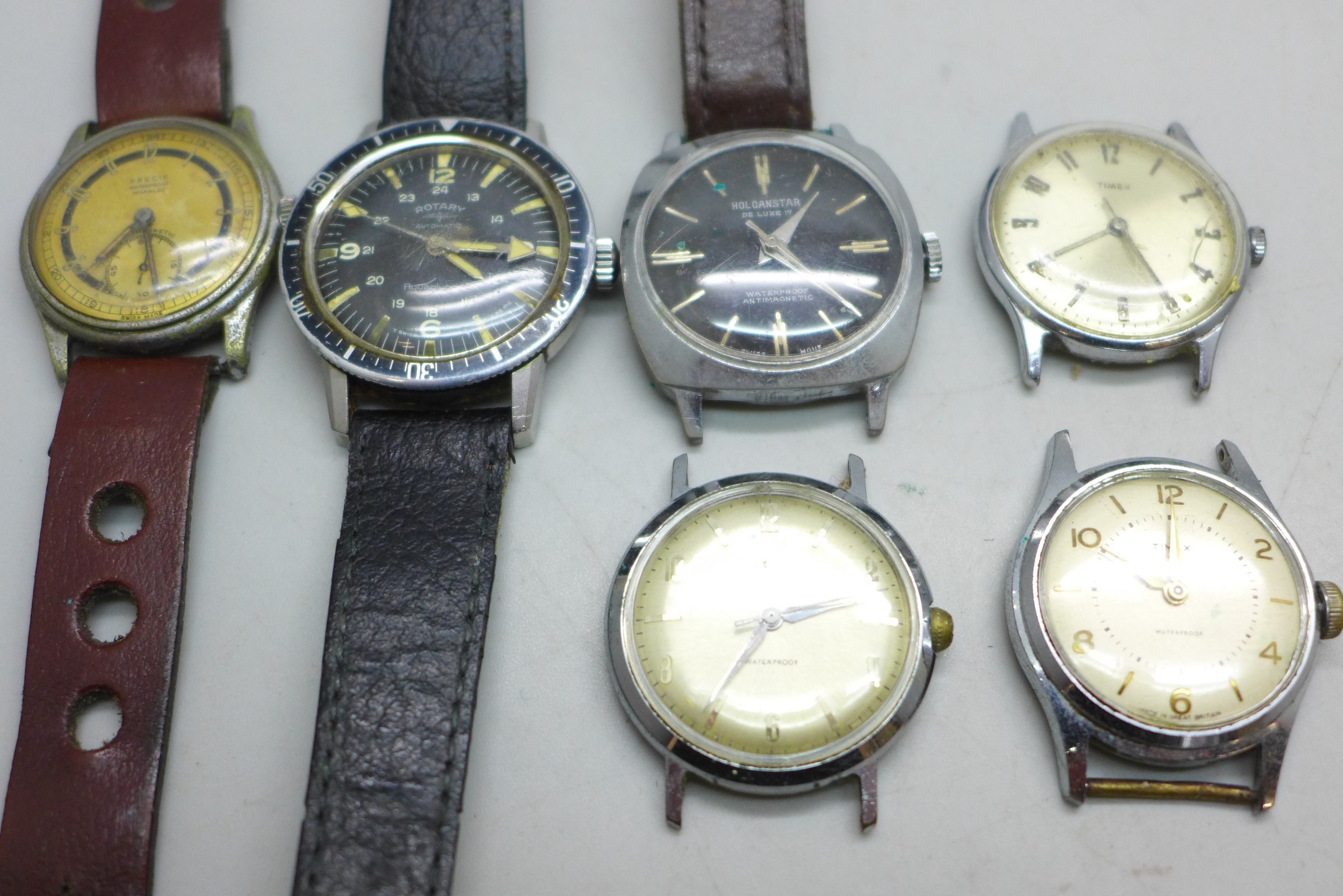 Six vintage wristwatches includin, Rotary Aquaplunge automatic and Holcanstar De Luxe 17