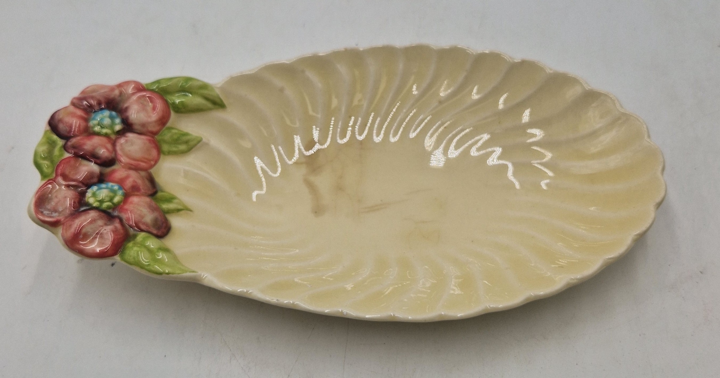 ROYAL STAFFORDSHIRE OVAL TRINKET DISH IN THE CLEMATIS DESIGN Signed By Designer Clarice Cliff