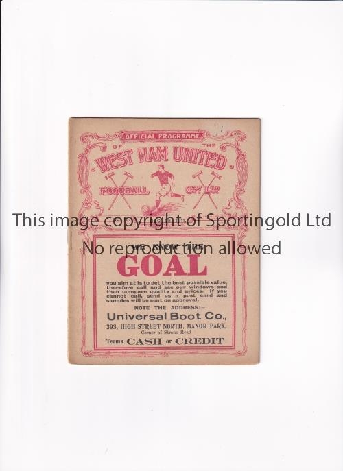 WEST HAM UNITED V LEYTON 1911 Programme for the Southern League match at West Ham 25/12/1911, team changes and scores entered. Good
