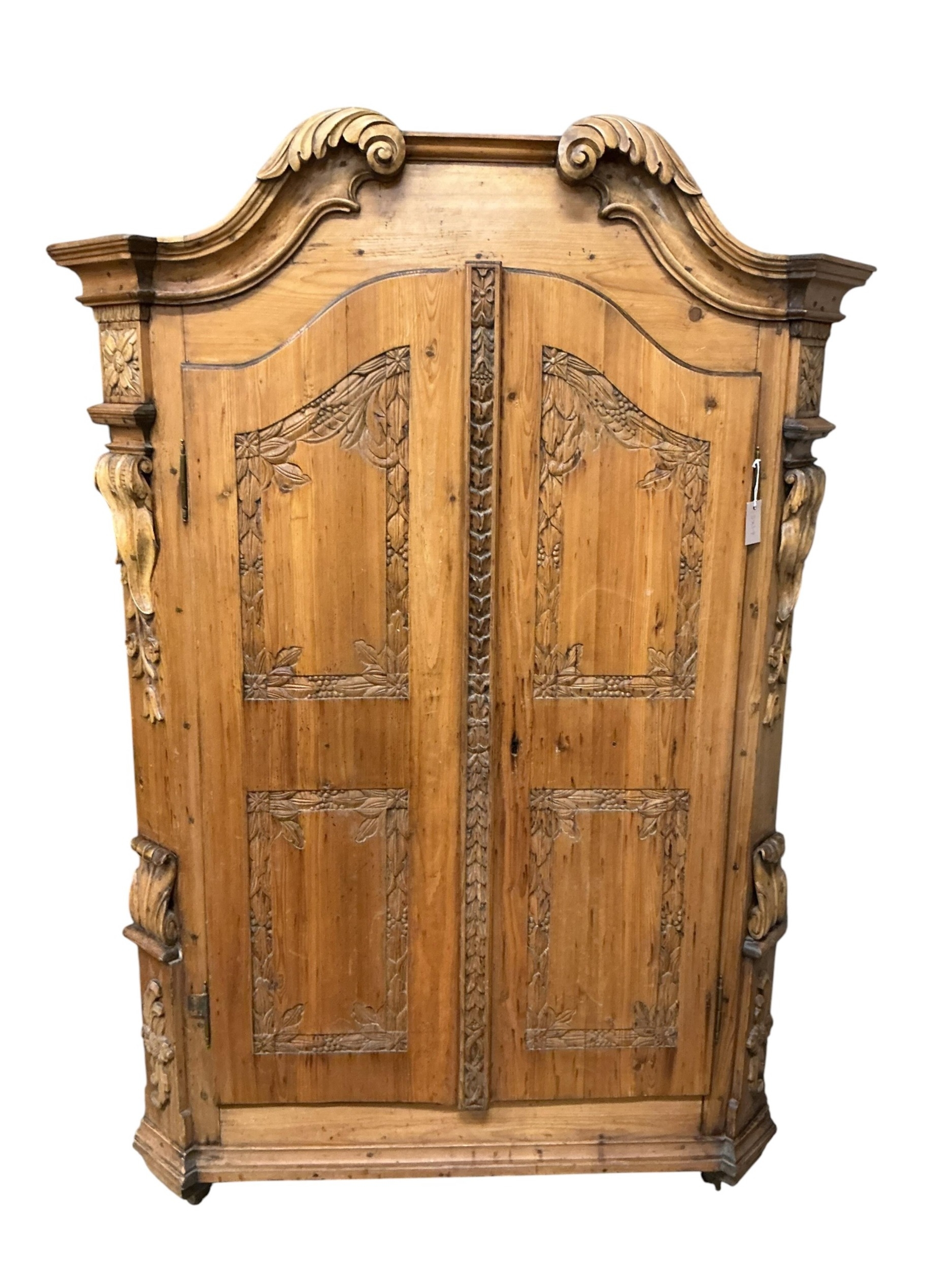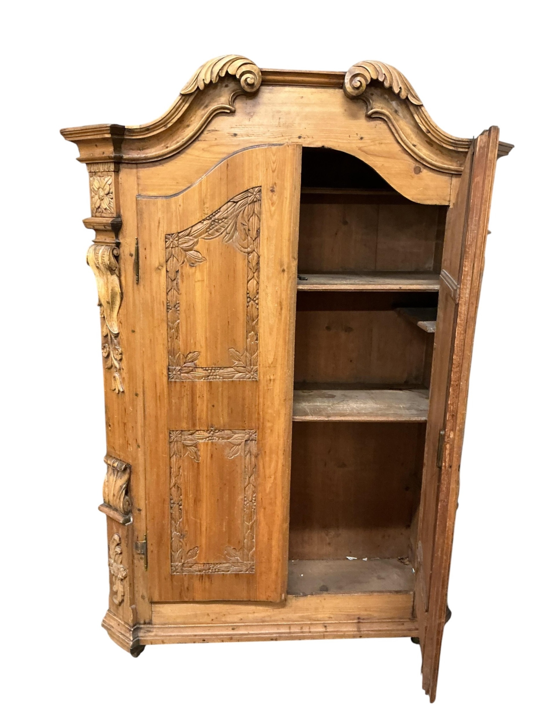 A 19th century Tyrolean style pine armoire, width 133cm, depth 54cm, height 191cm