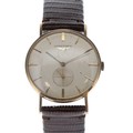 Longines - 9ct Gold Watch. Longines Cal. 19.4 Hand-wind movement. 9ct Gold case and Leather strap. Acrylic crystal is in good condition. Watch is running at the time of listing, strap and buckle are not original. Offered without original box or papers.
