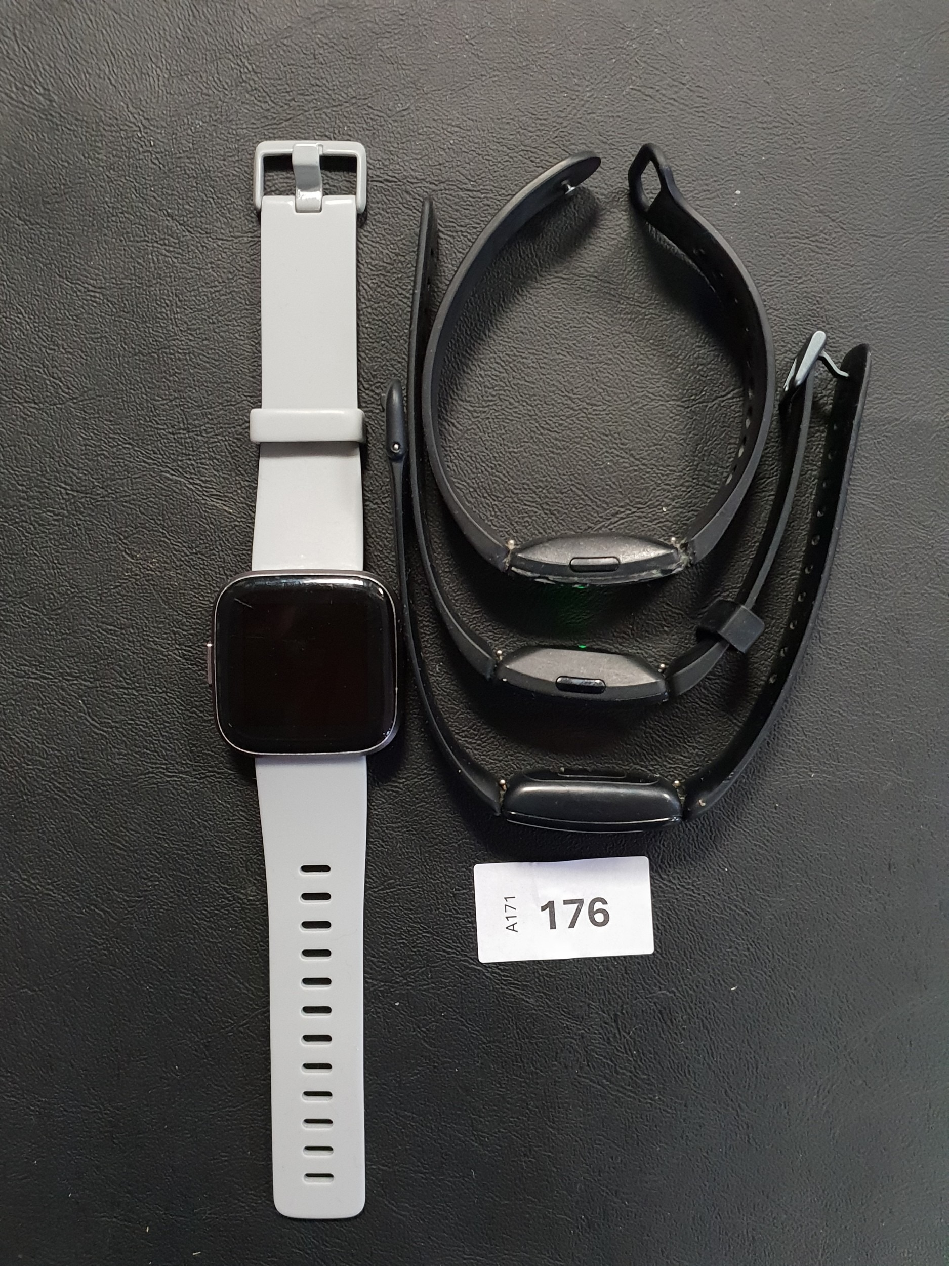 FOUR FITBIT FITNESS TRACKERScomprising a Versa 2, an Inspire 2, an Inspire HR and a Inspire, wiped.