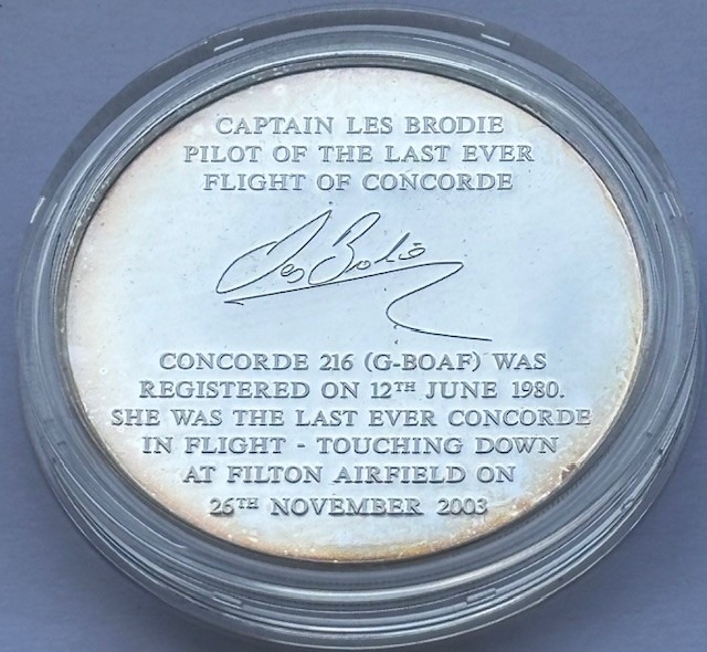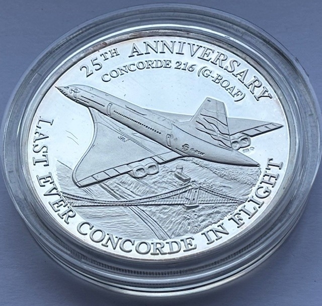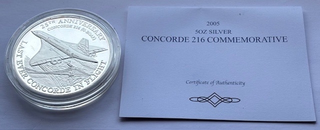 2005 .999 Solid Silver Proof Last Flight of Concorde 216 Commemorative Medallion, Diameter 65mm, Weight 5oz, COA, Presentation box