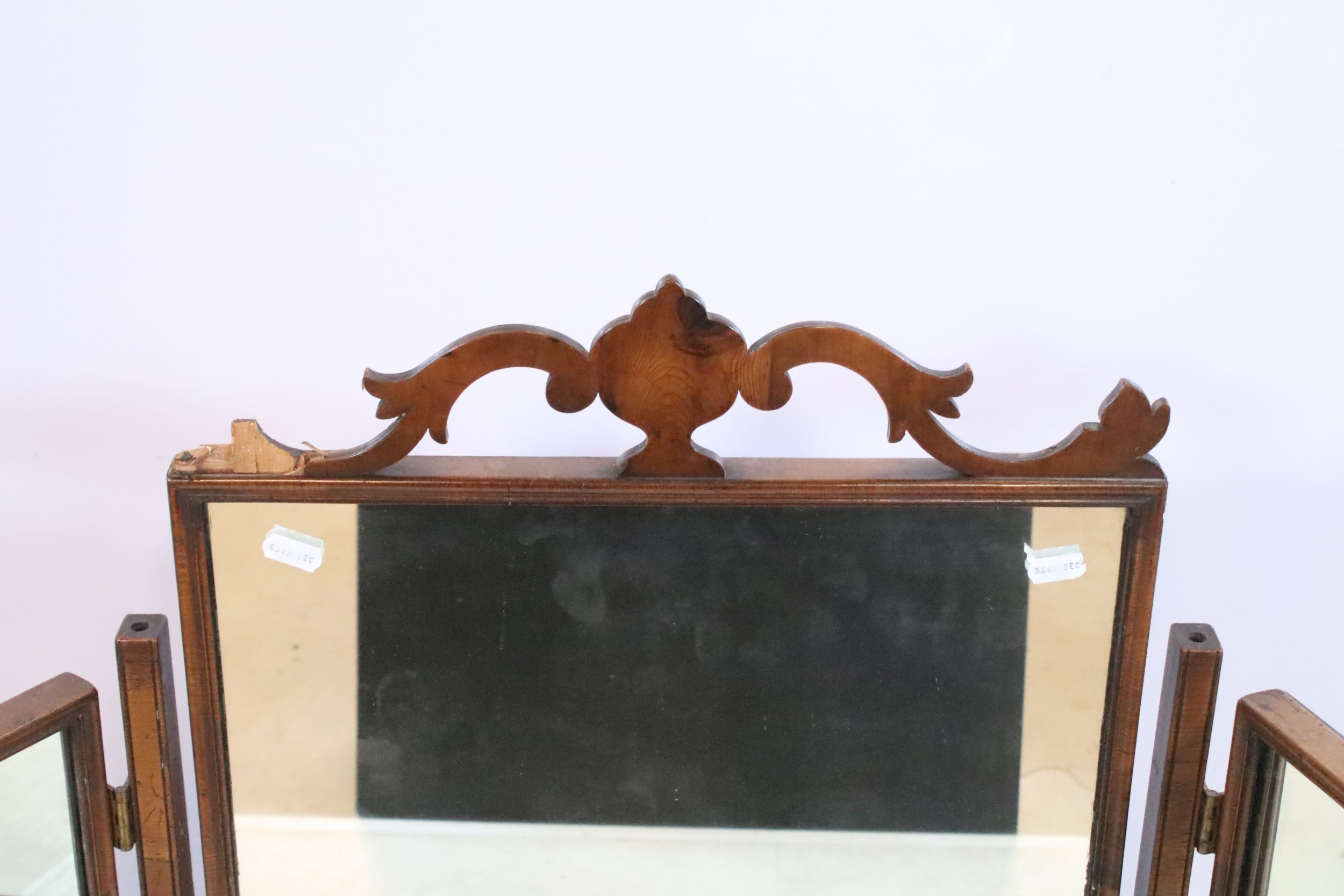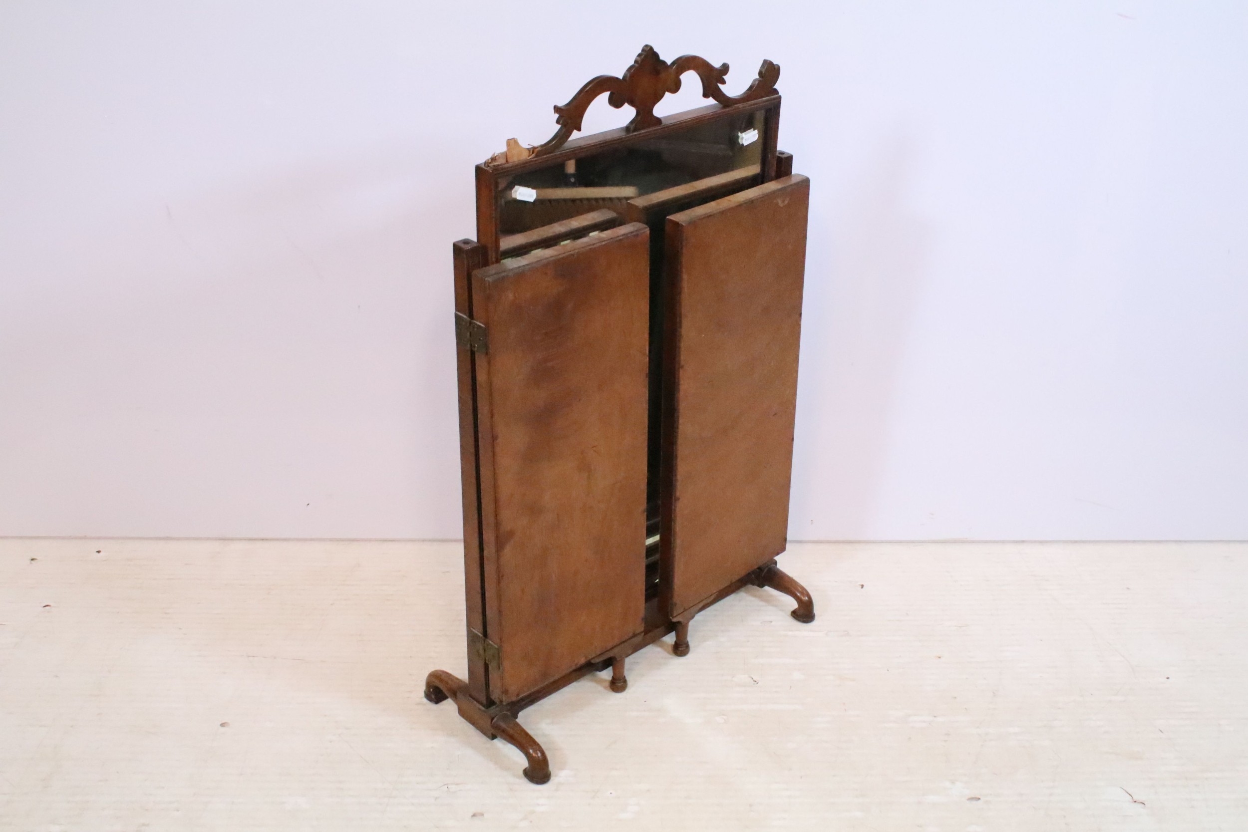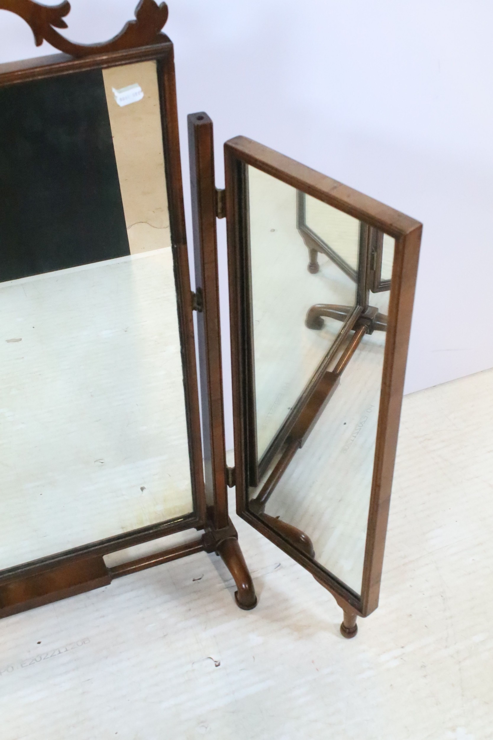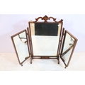 19th century mahogany triptych dressing table mirror, having open fretwork pediment, W 49cm x H 79cm