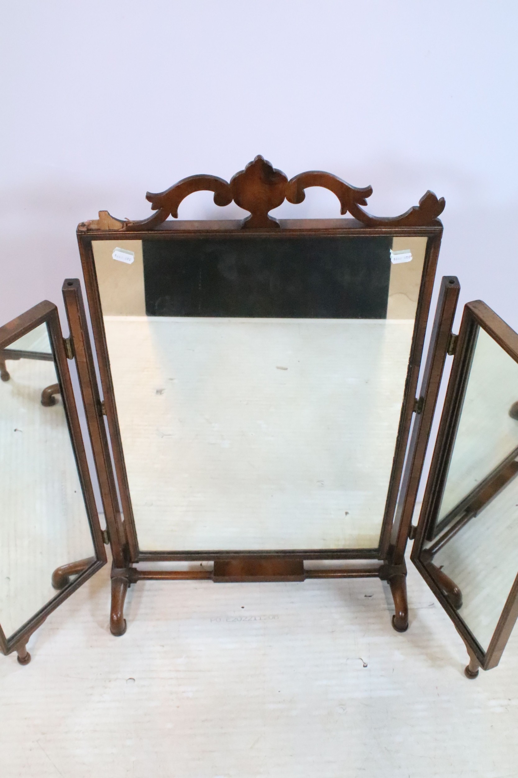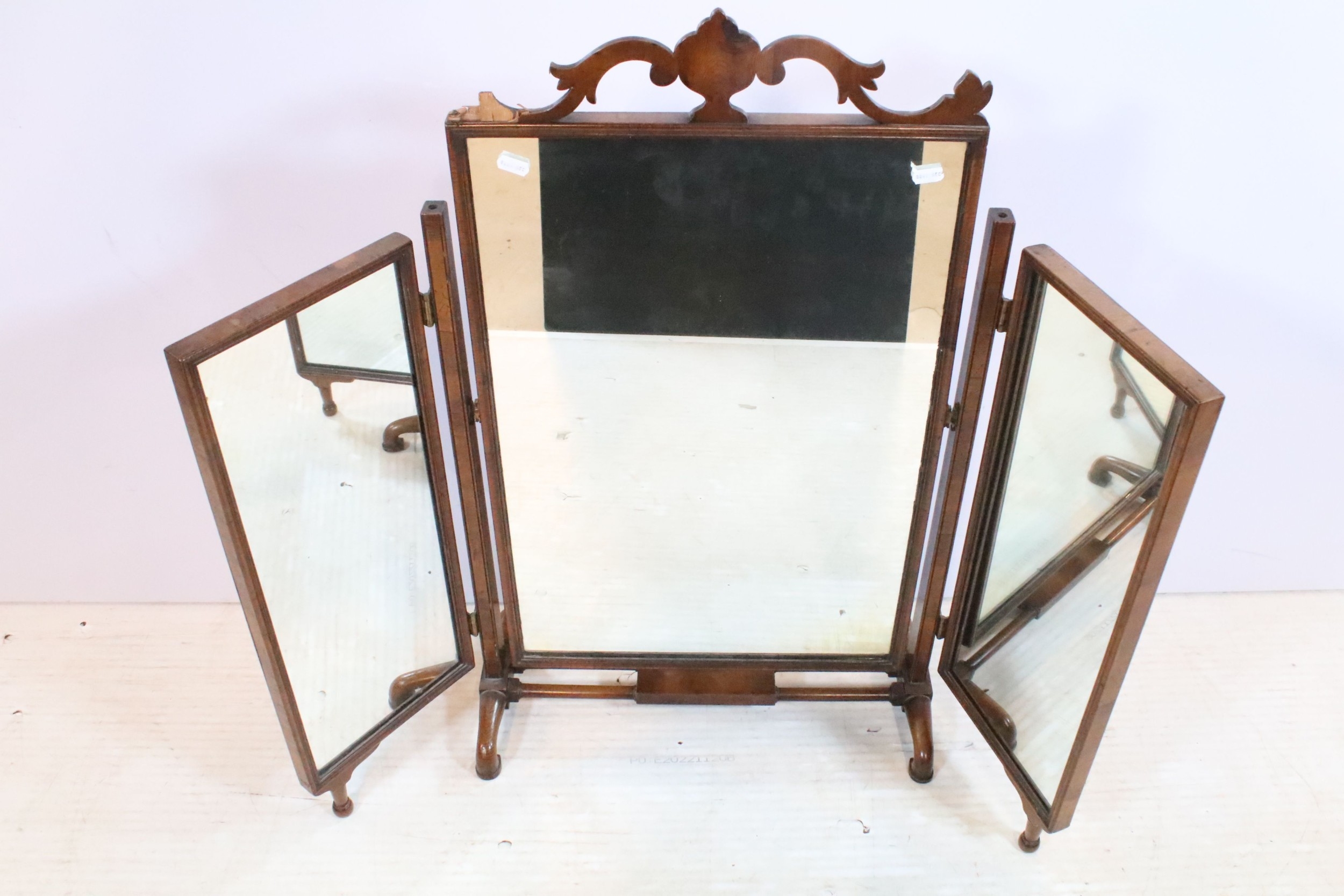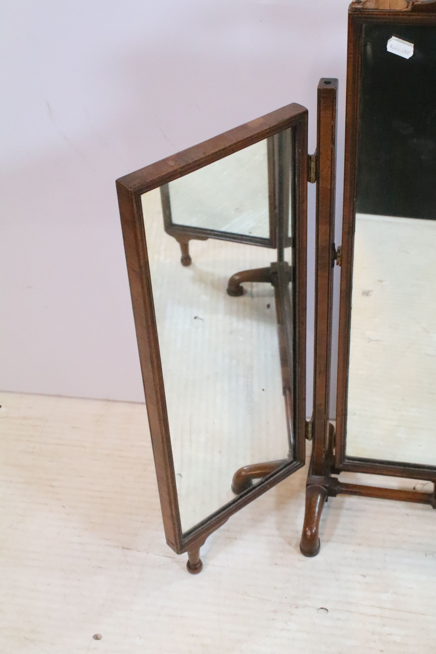 19th century mahogany triptych dressing table mirror, having open fretwork pediment, W 49cm x H 79cm