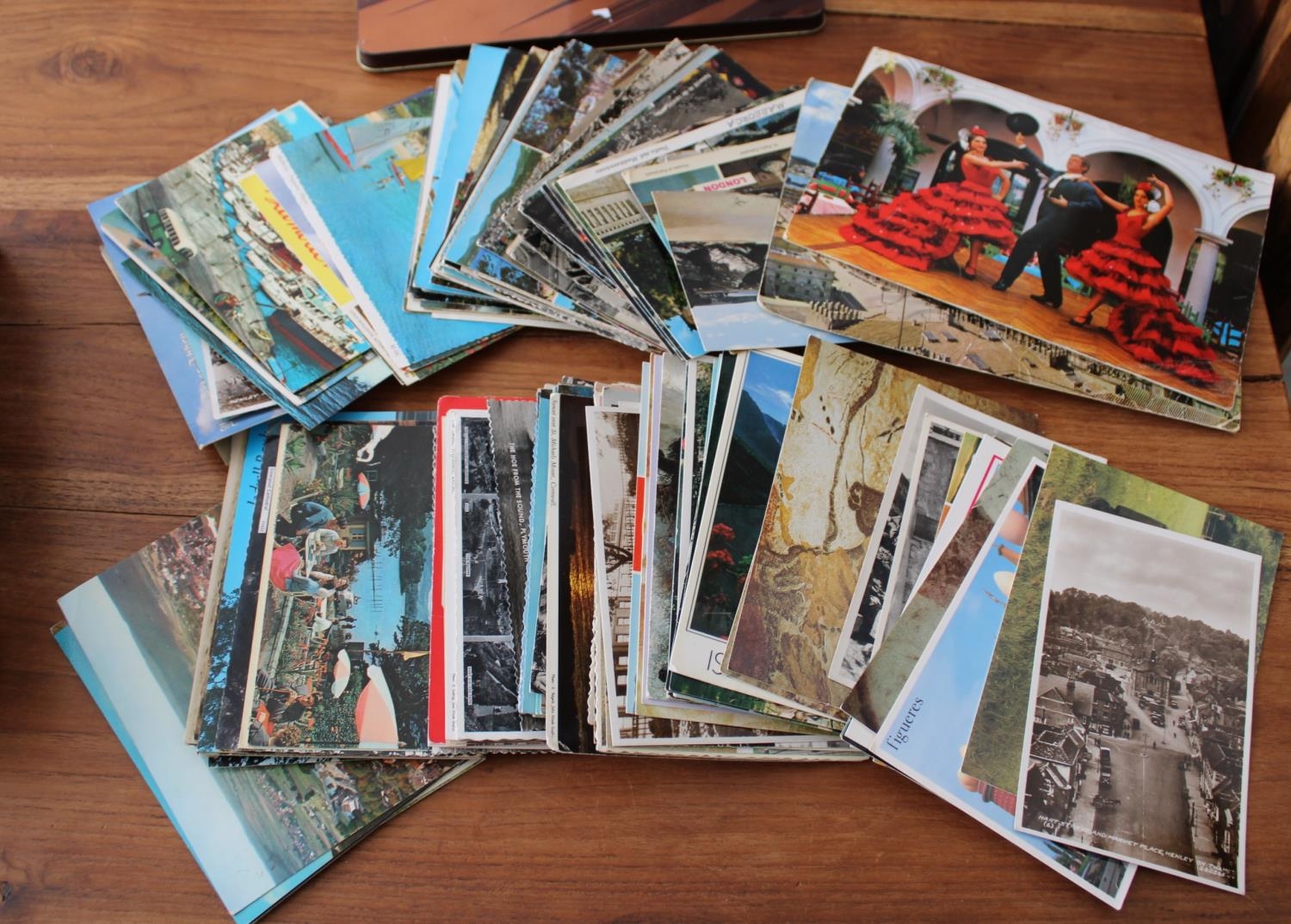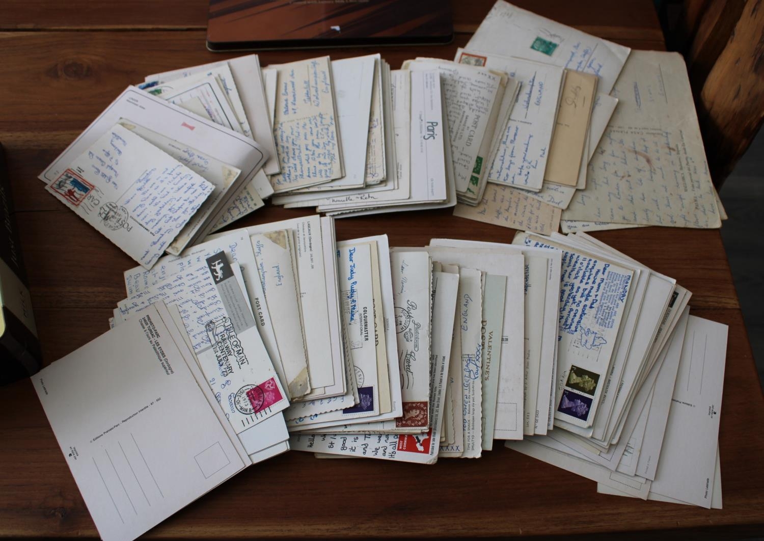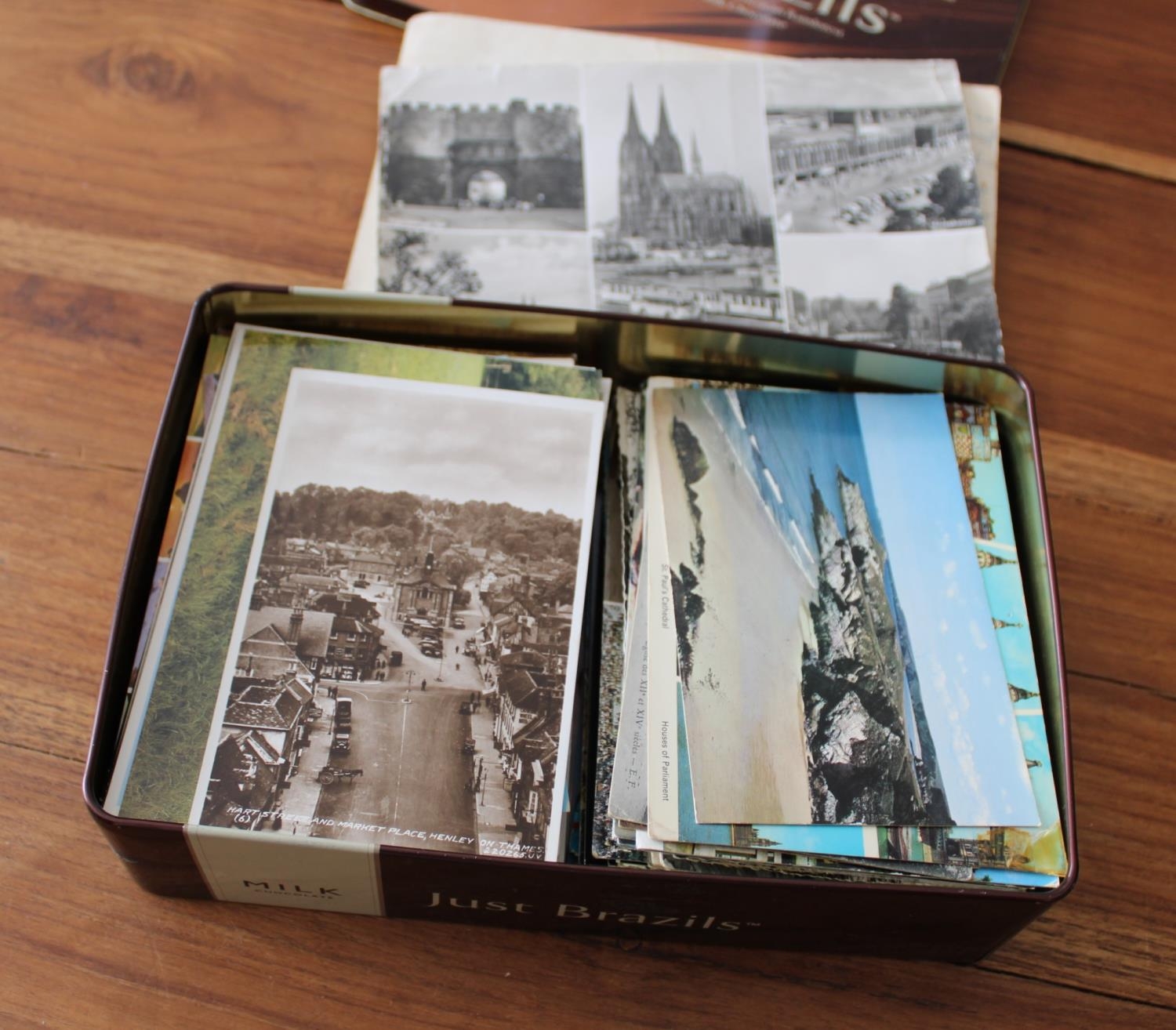 Collection of Worldwide Postcards in Tin