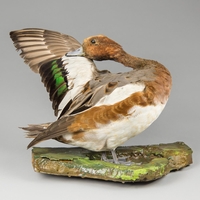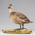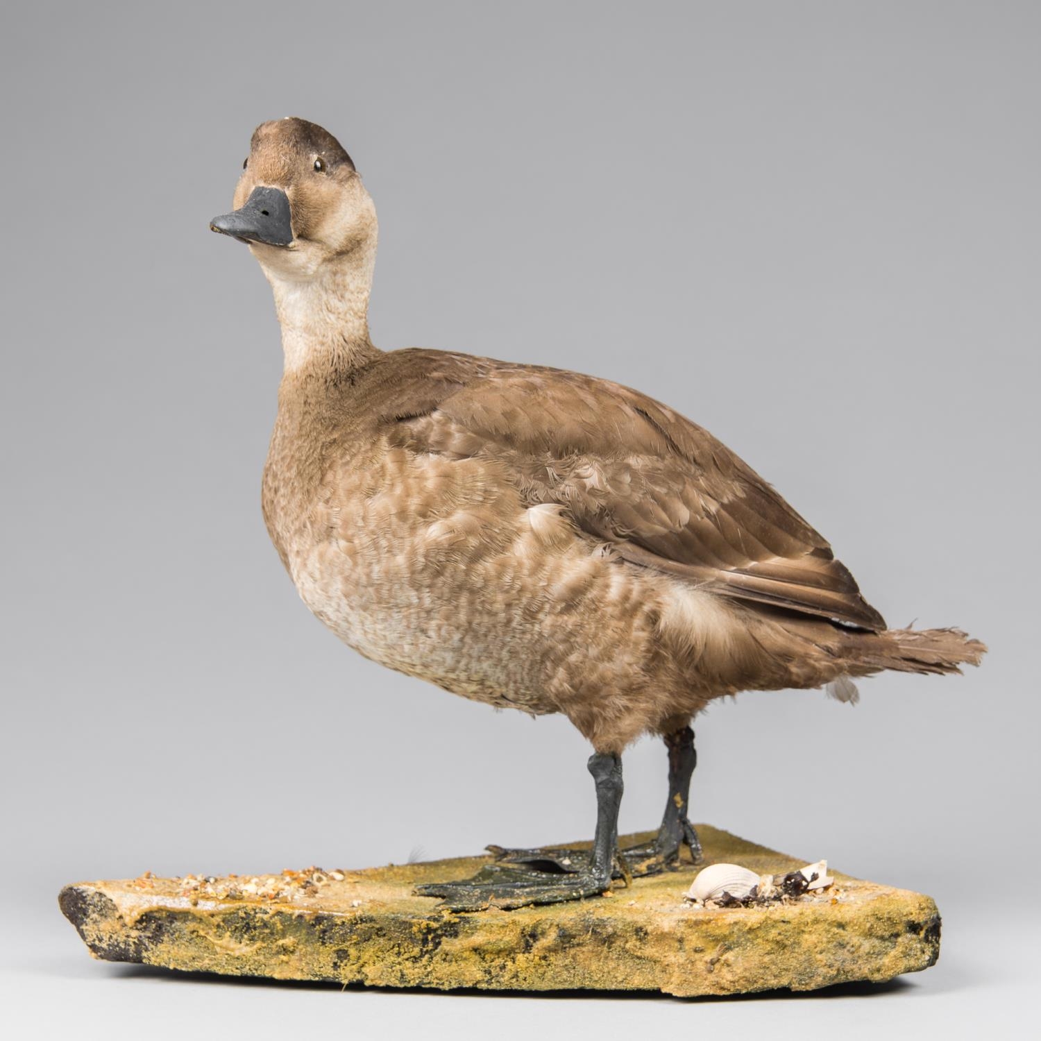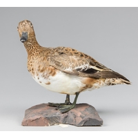 AN EARLY 20TH CENTURY TAXIDERMY COMMON SCOTER UPON A NATURALISTIC BASE.