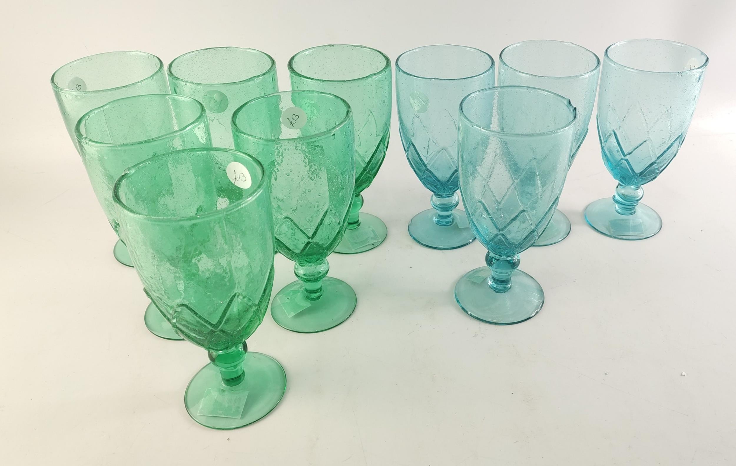 XMAS GIFTING IDEAS! Six green and 4 blue recycled bubble glass wine glasses. RRP £13 each