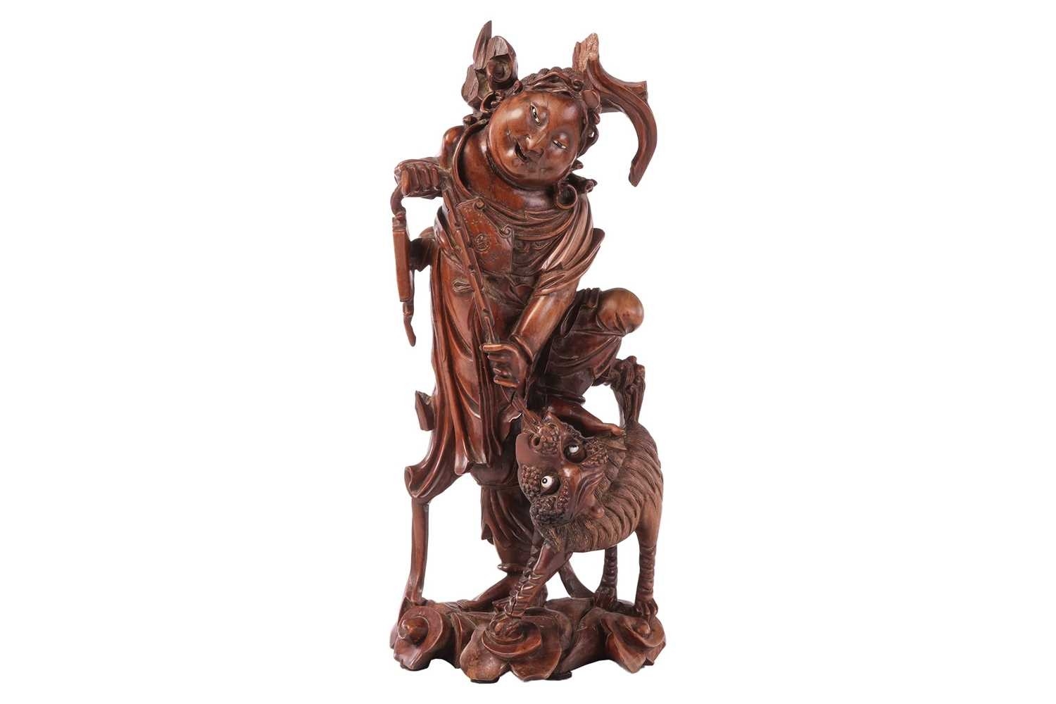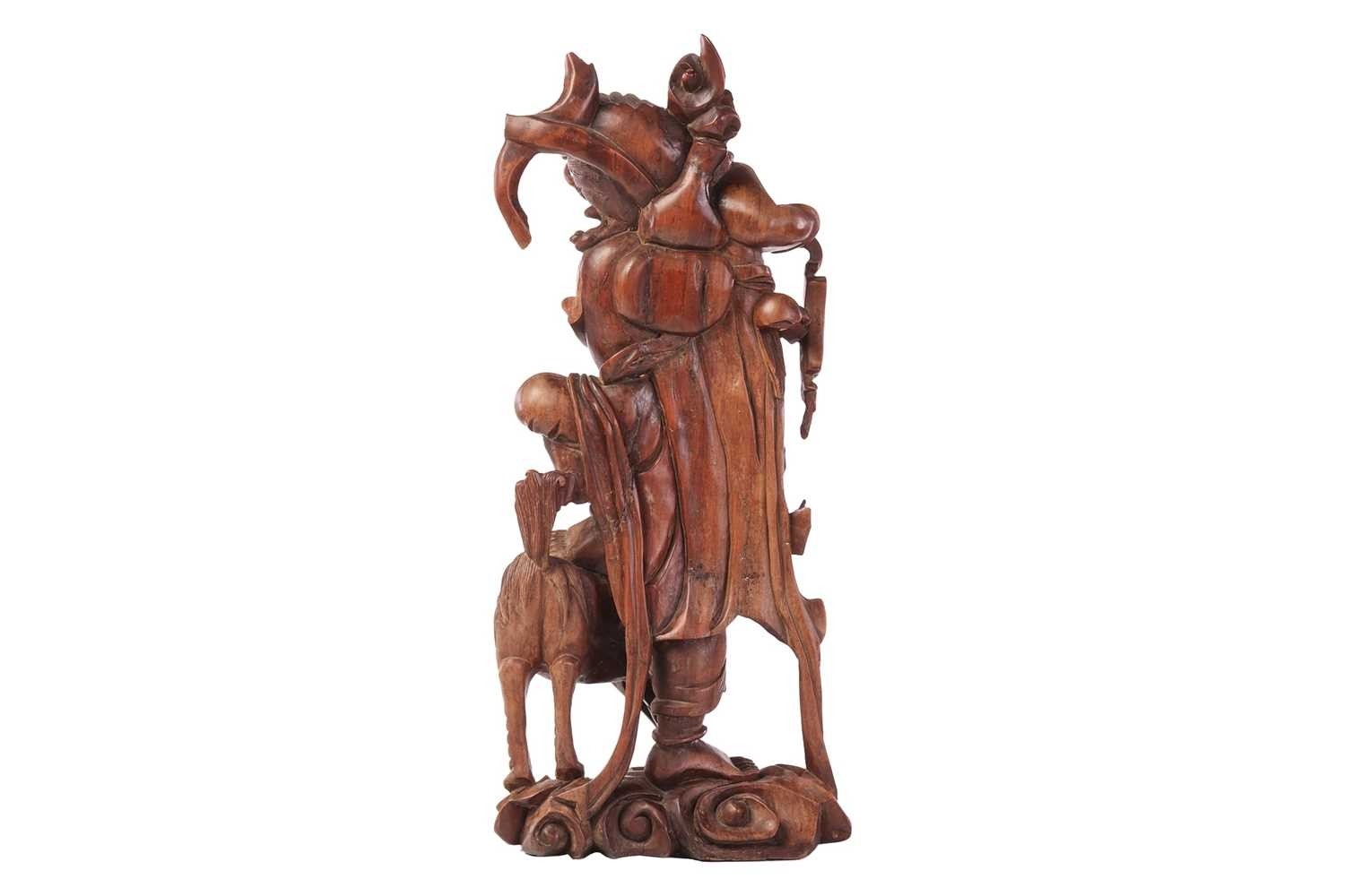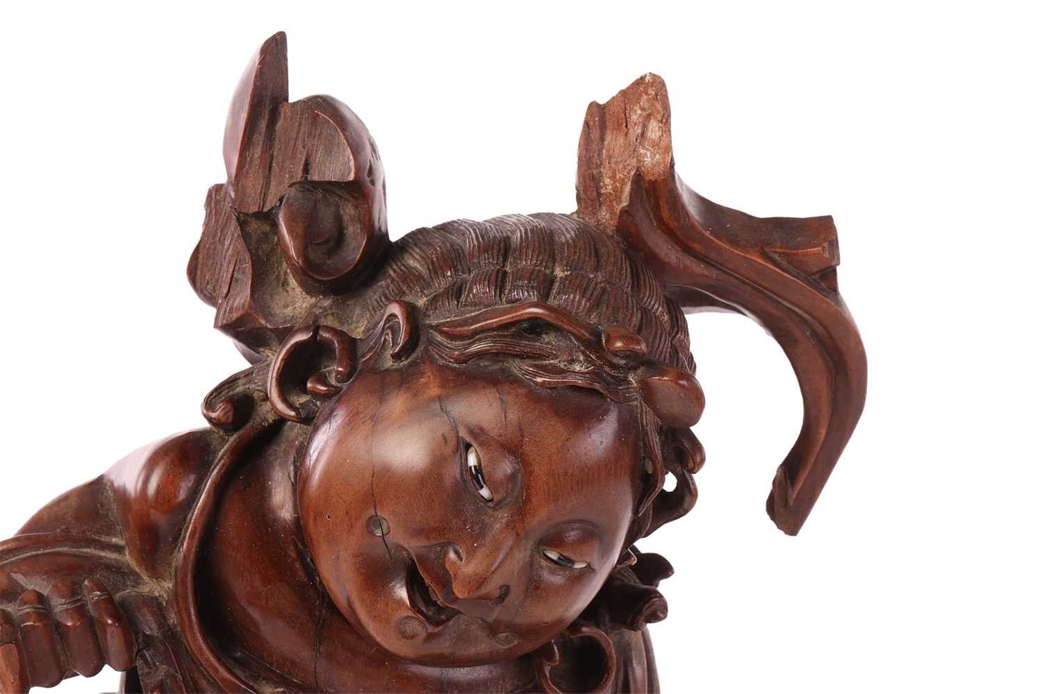 A Chinese root carved figure, possibly Liu Hai, early 20th century, 43 cm high.