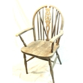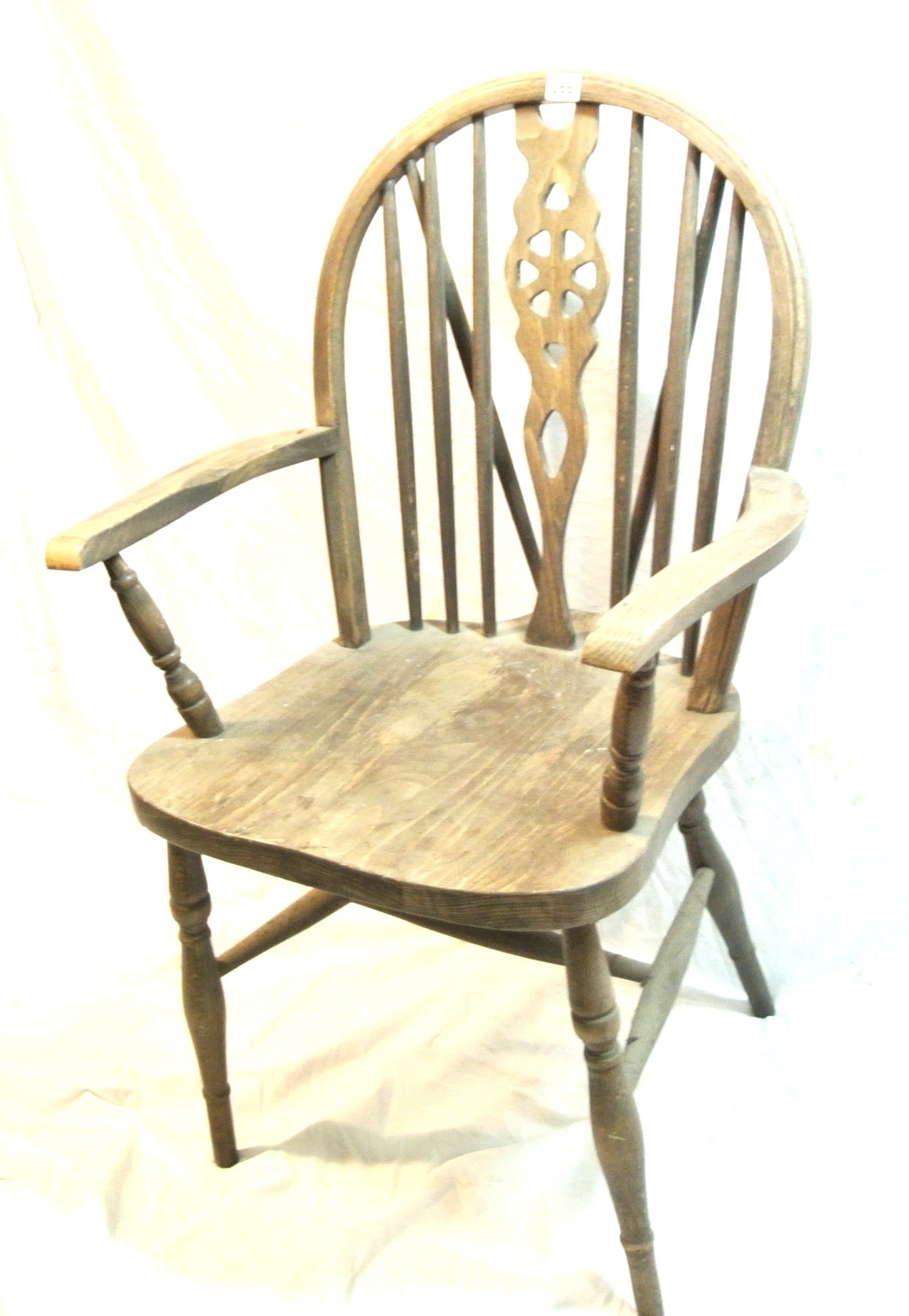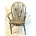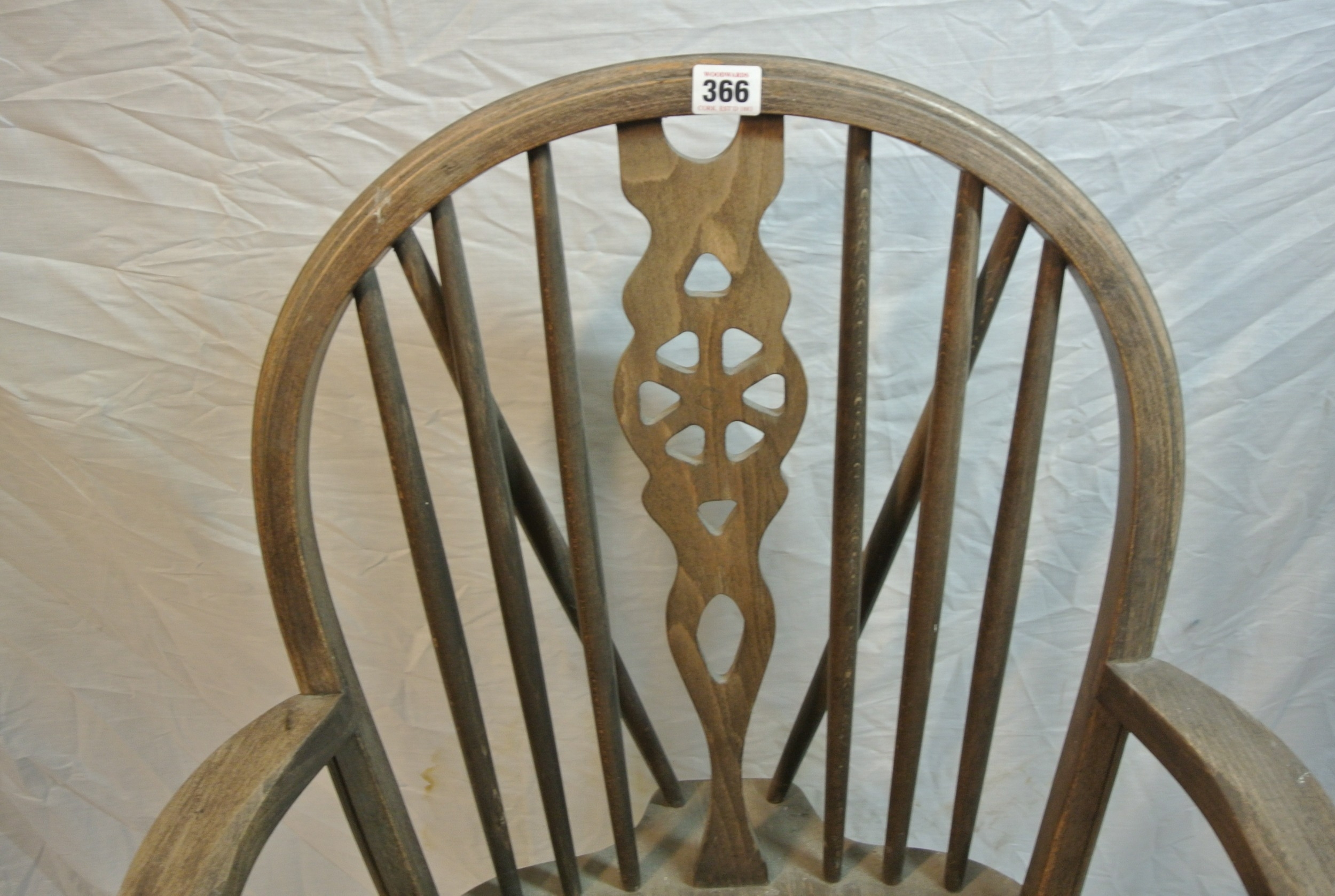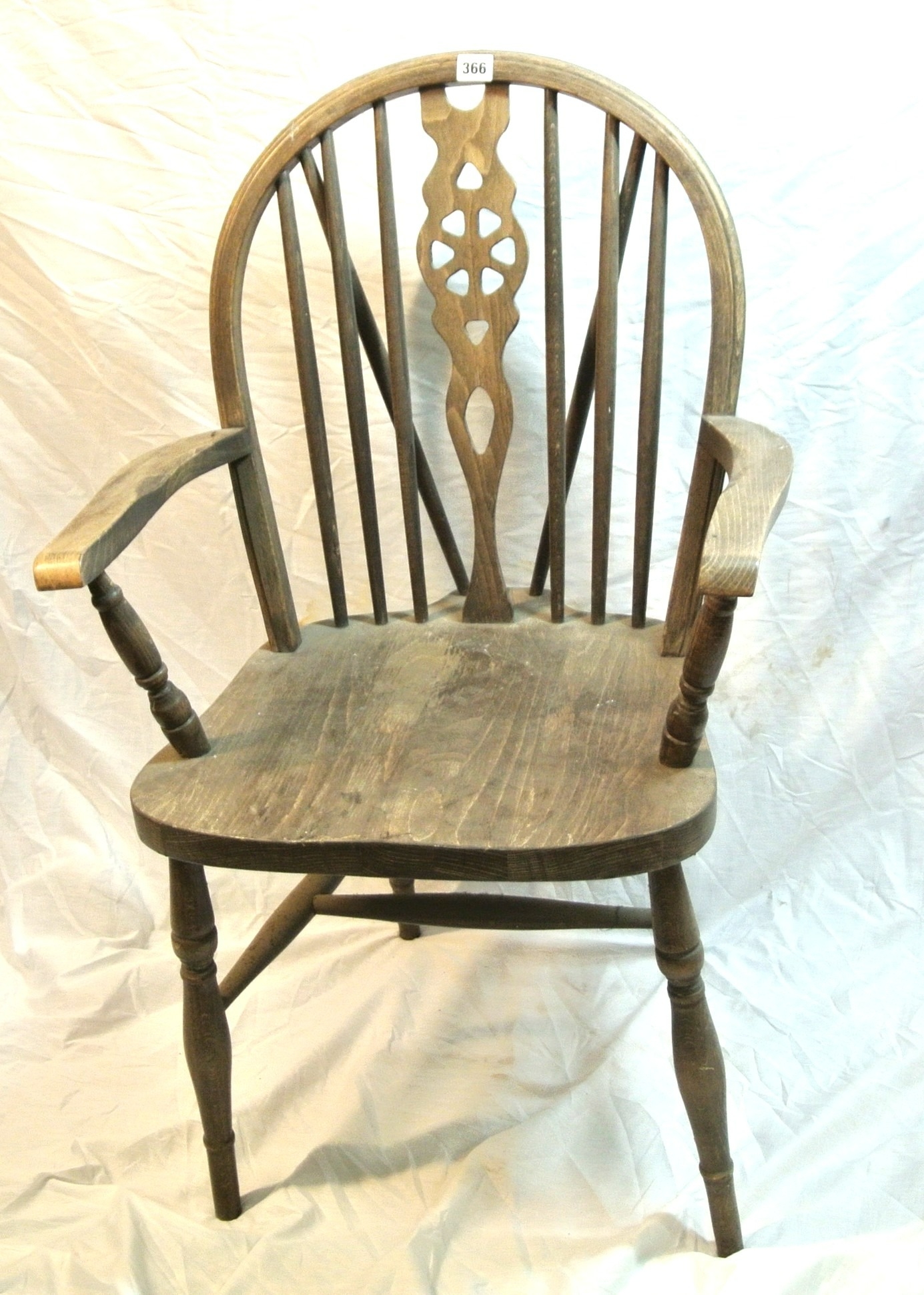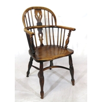Victorian Windsor armchair with turned rails and pierced splat, shaped arms, on baluster legs with stretchers