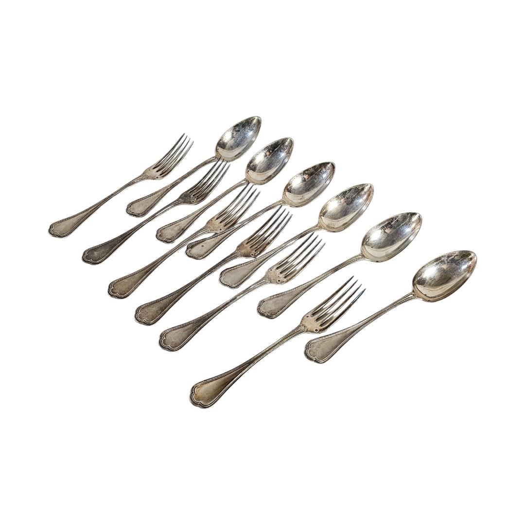 Comprising six large table forks and six large dinner forks, Minerva mark to bowl.