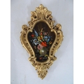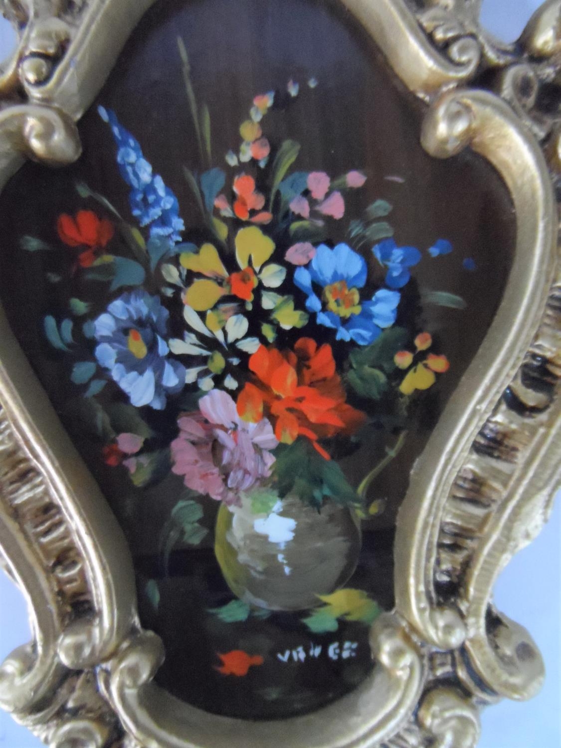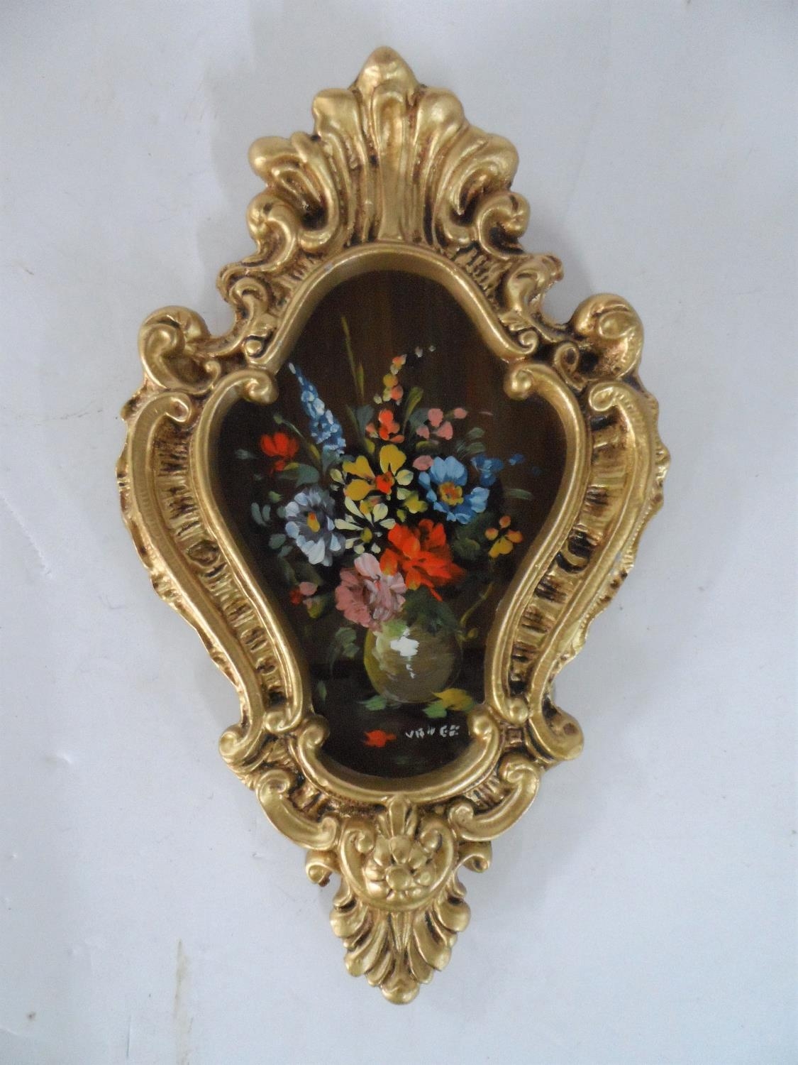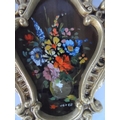 Vintage Peerart ornately metal framed, hand-painted vase of flowers, 25 cm tall