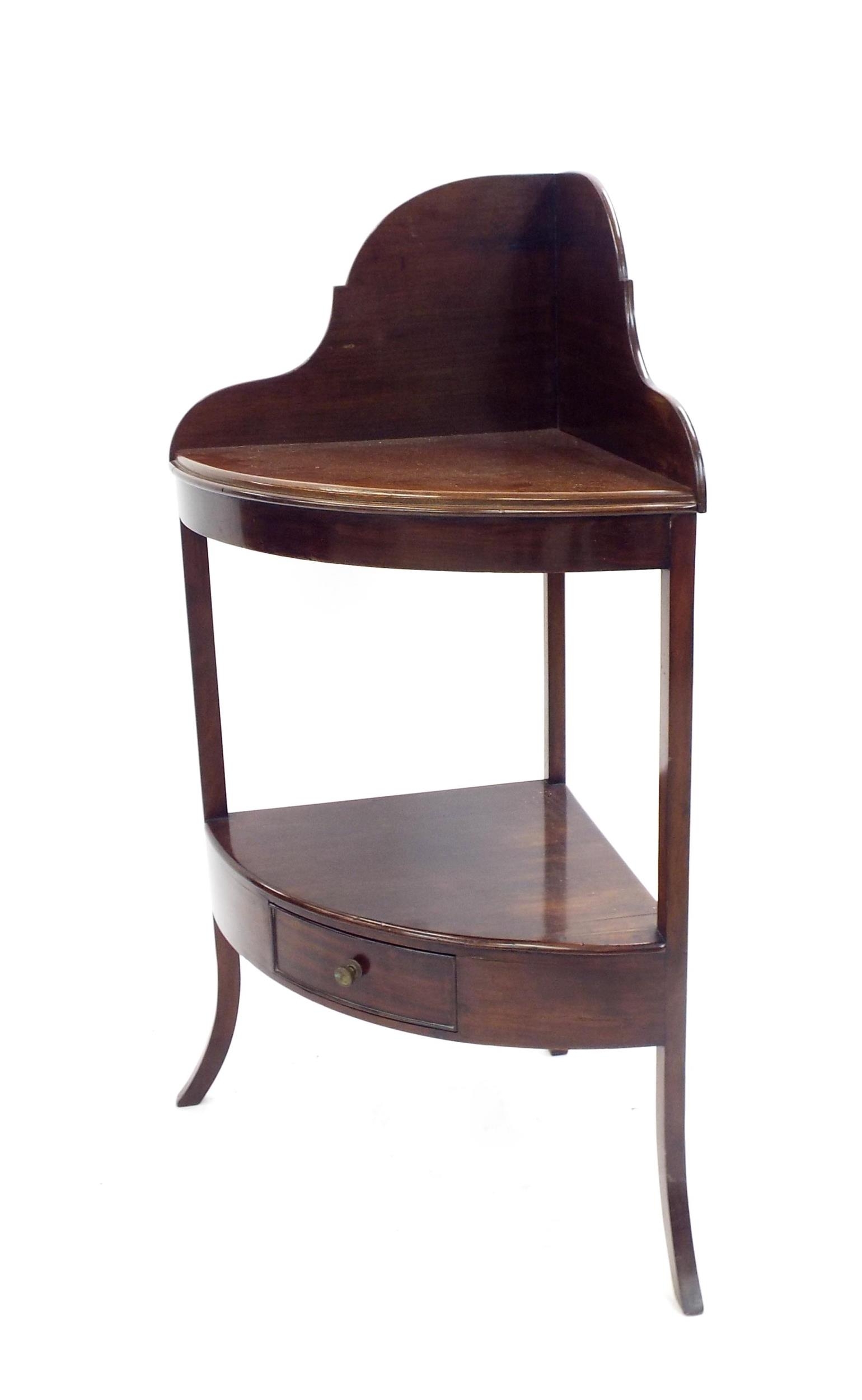19th century mahogany corner washstand, with raised arched pediment fitted with a single drawer, 42" high, 25" wide, 17" deep