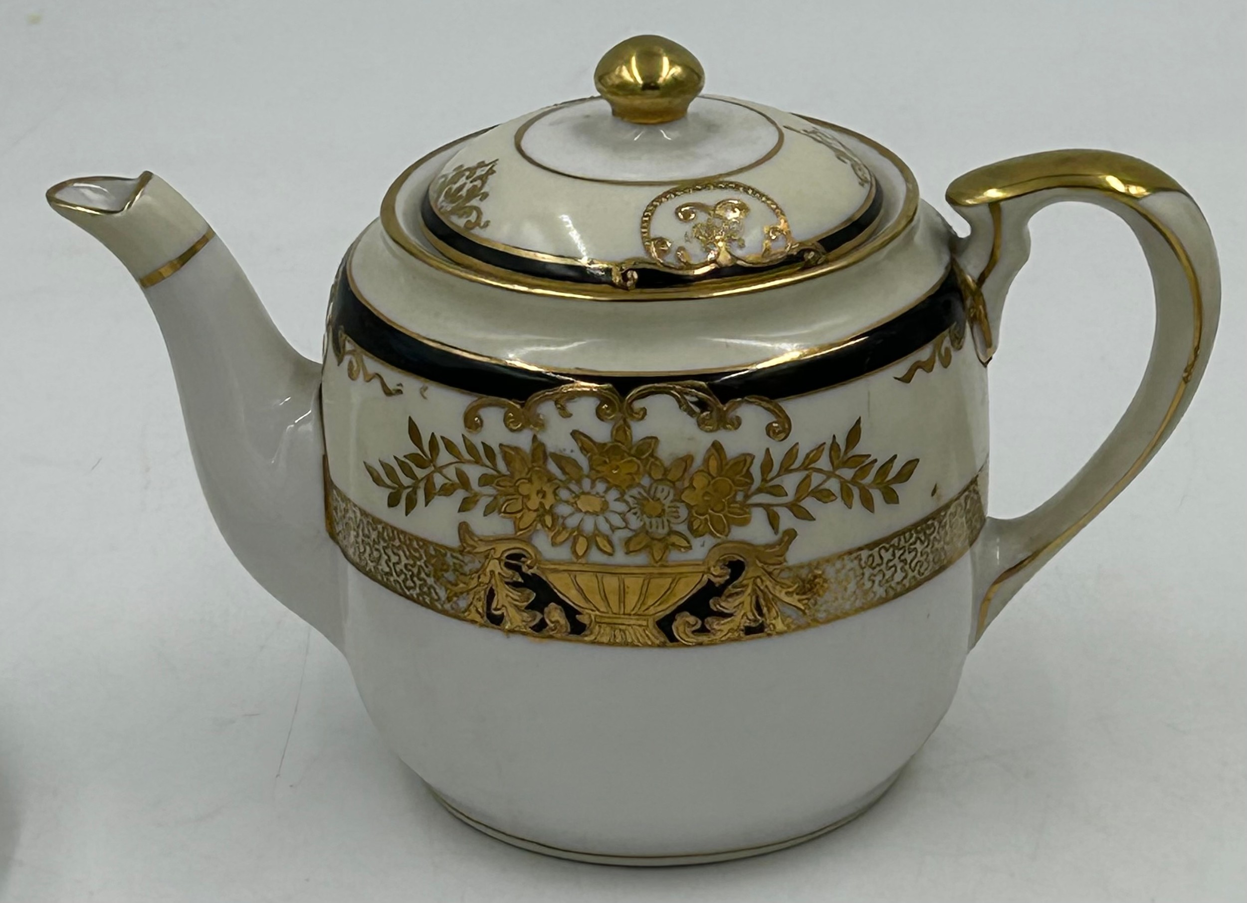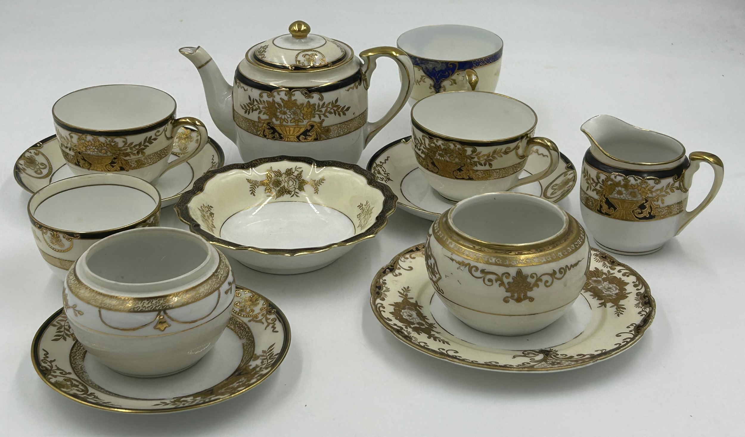 Loss to gilt on most, coffee pot with missing finial, crackle to all.