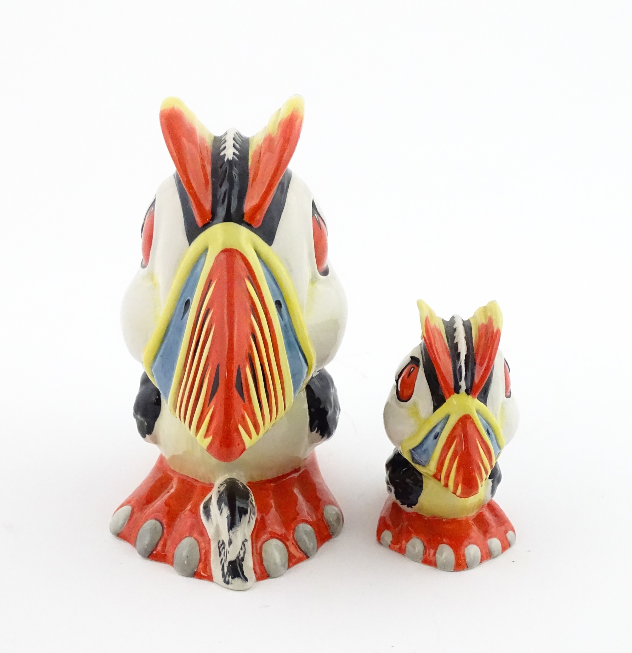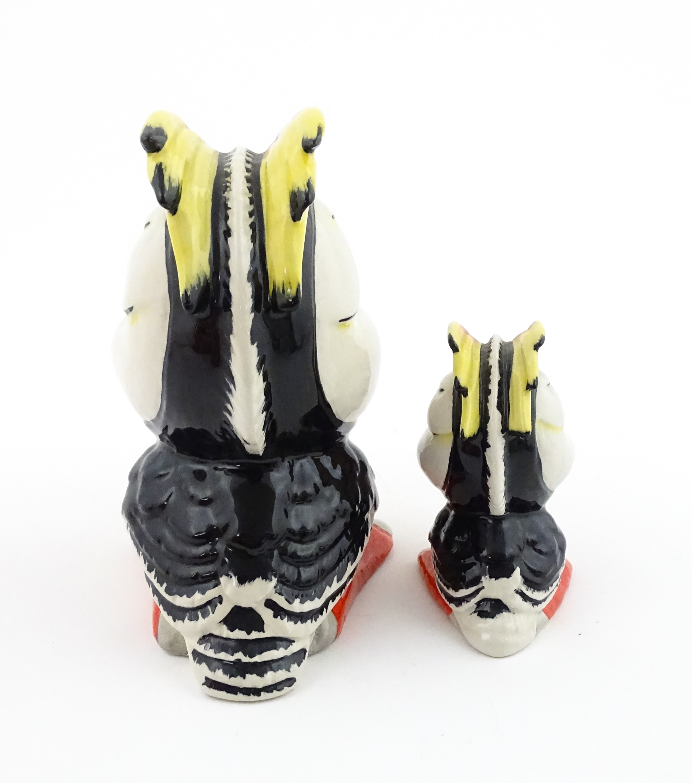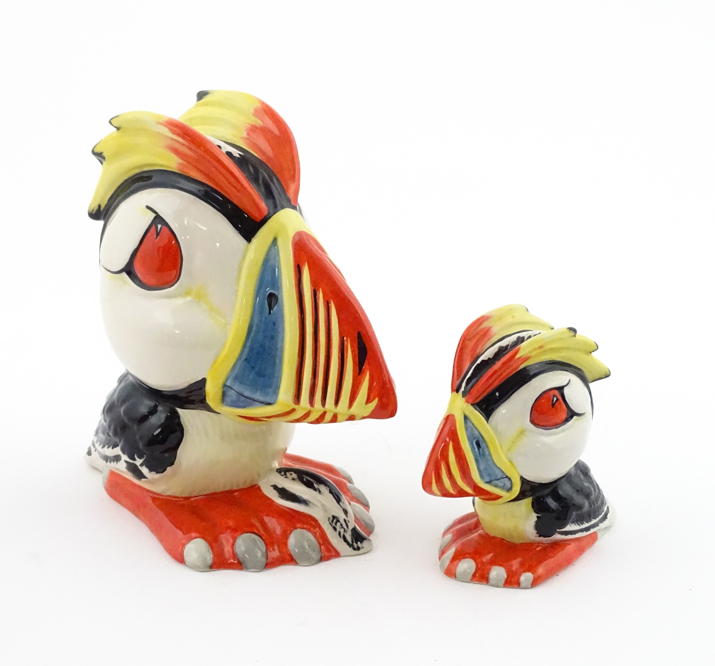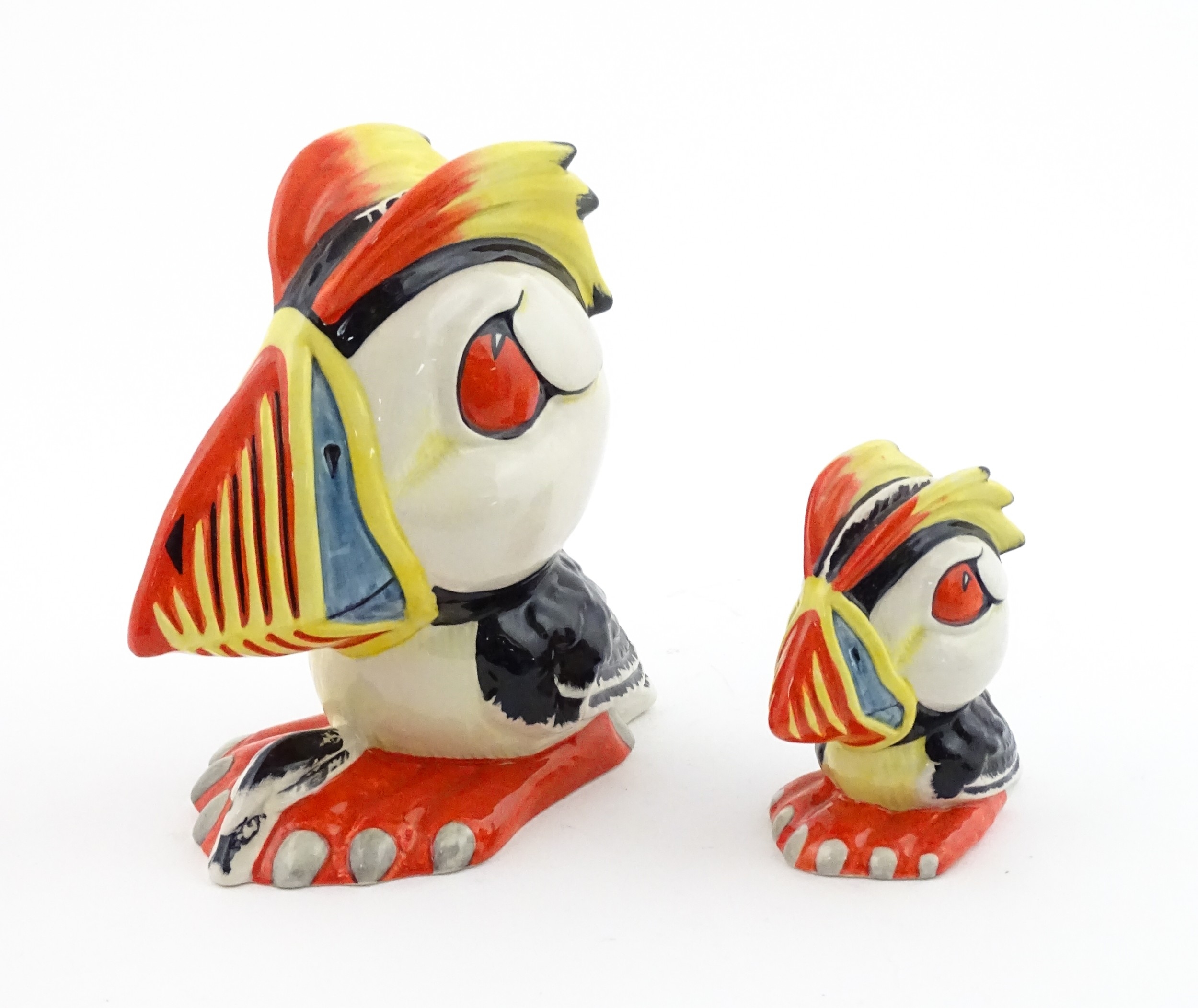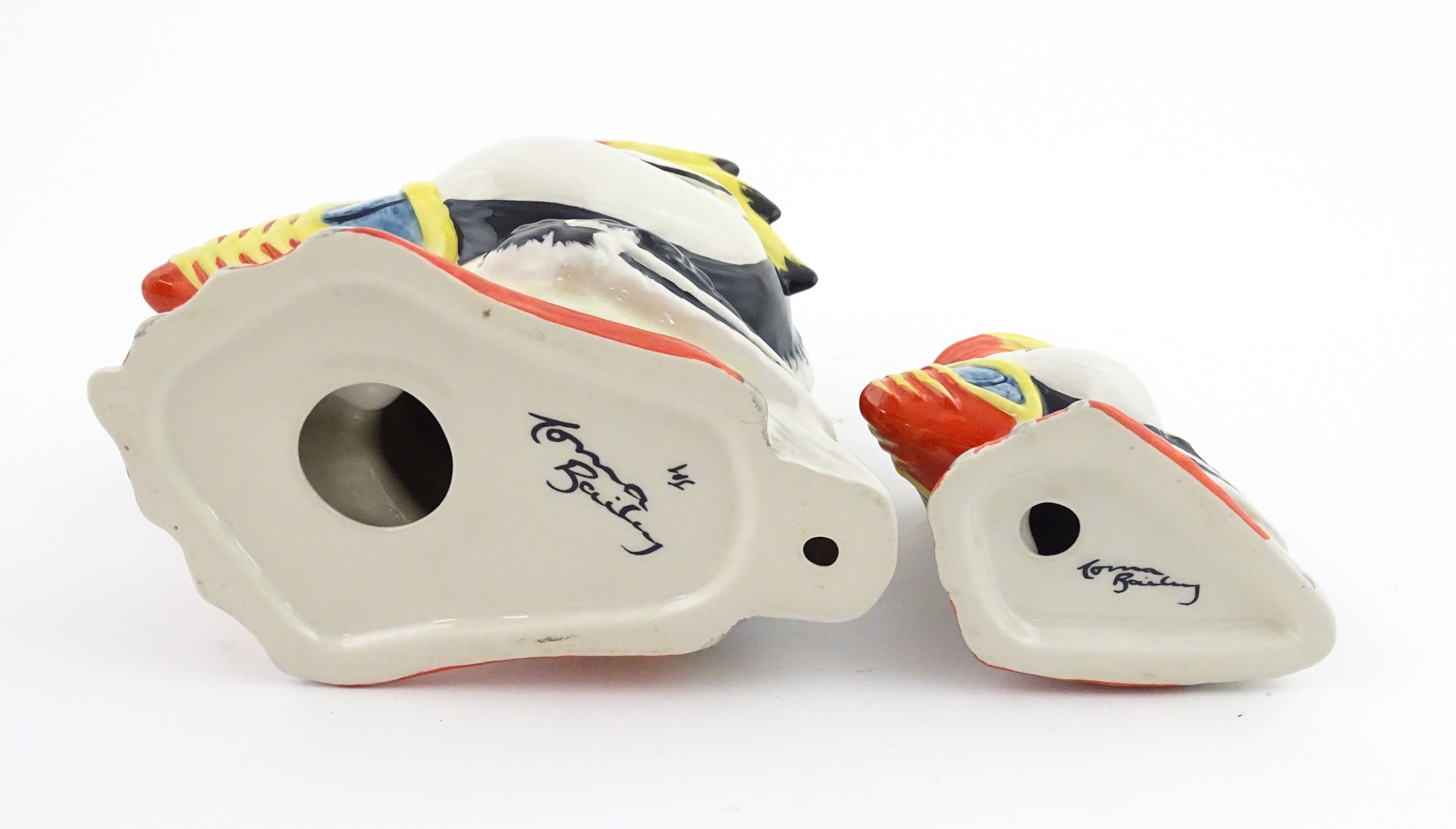 Two Lorna Bailey models of Percy the Puffin. Both signed under. Largest approx. 6 1/2" high (2)