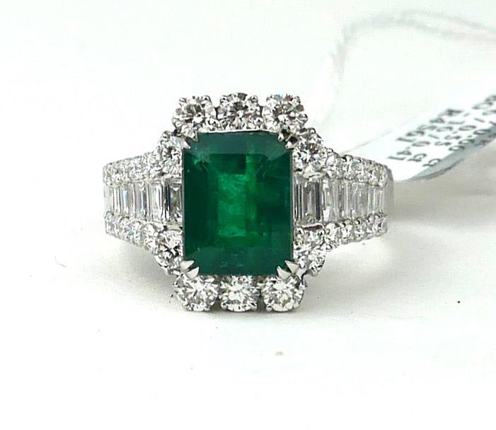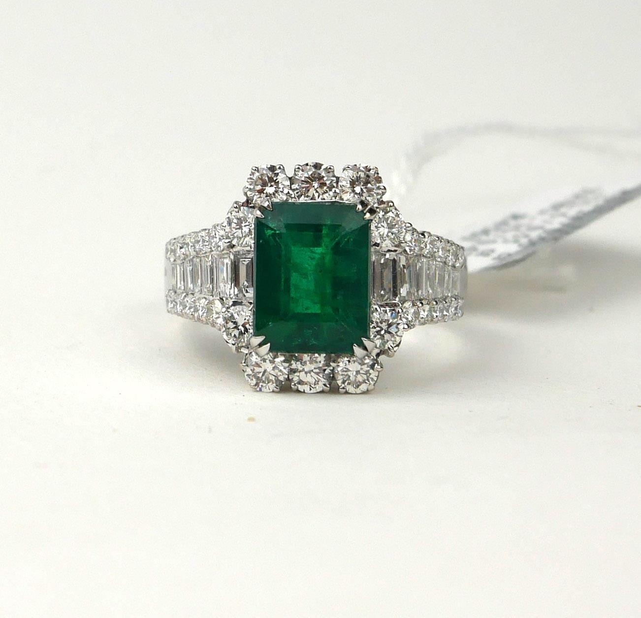 AN 18CT WHITE GOLD RING SET WITH A 3.36CT EMERALD