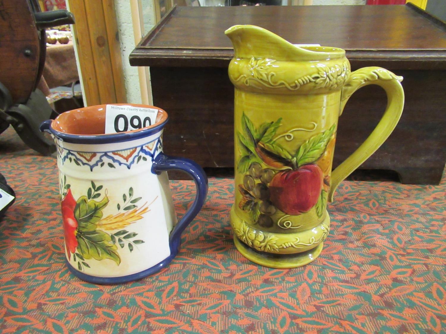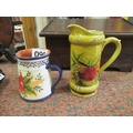 2 Glazed jugs one hand painted.