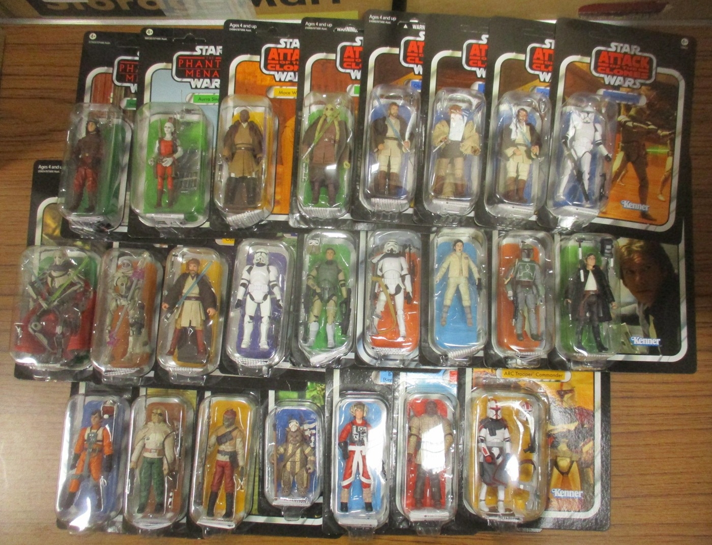 Star Wars. Hasbro. Collection of The Vintage Collection figures, generally mint in near mint bubble packs, includes ranges of The Phantom Menace, Attack of the Clones, Revenge of the Sith, The Empire Strikes Back, Return of the Jedi, etc. Qty 24 (½B)