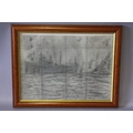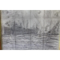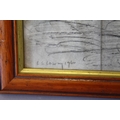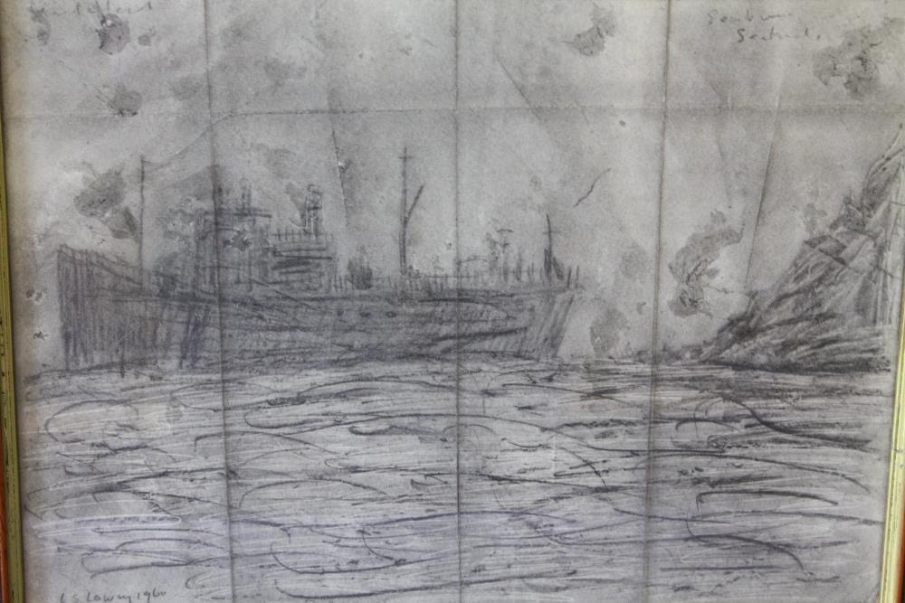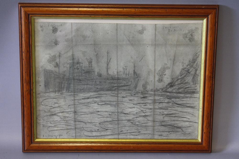 AFTER LAURENCE STEPHEN LOWRY (1887-1976). Coastal scene with steamship at Seabourne, bears signature and date 1960 lower left, pencil on paper, framed and glazed, 25 x 35 cm