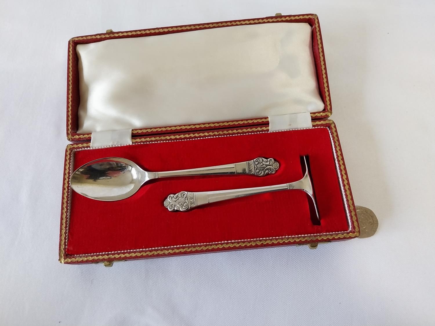 HM Silver boxed baby spoon & pusher c1960 41grams