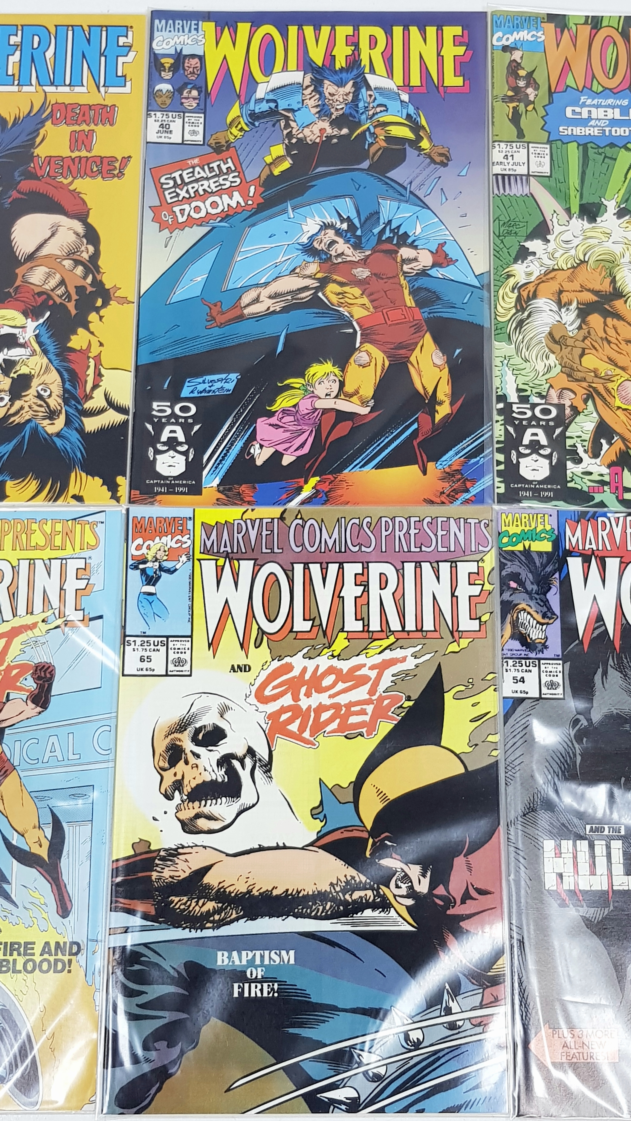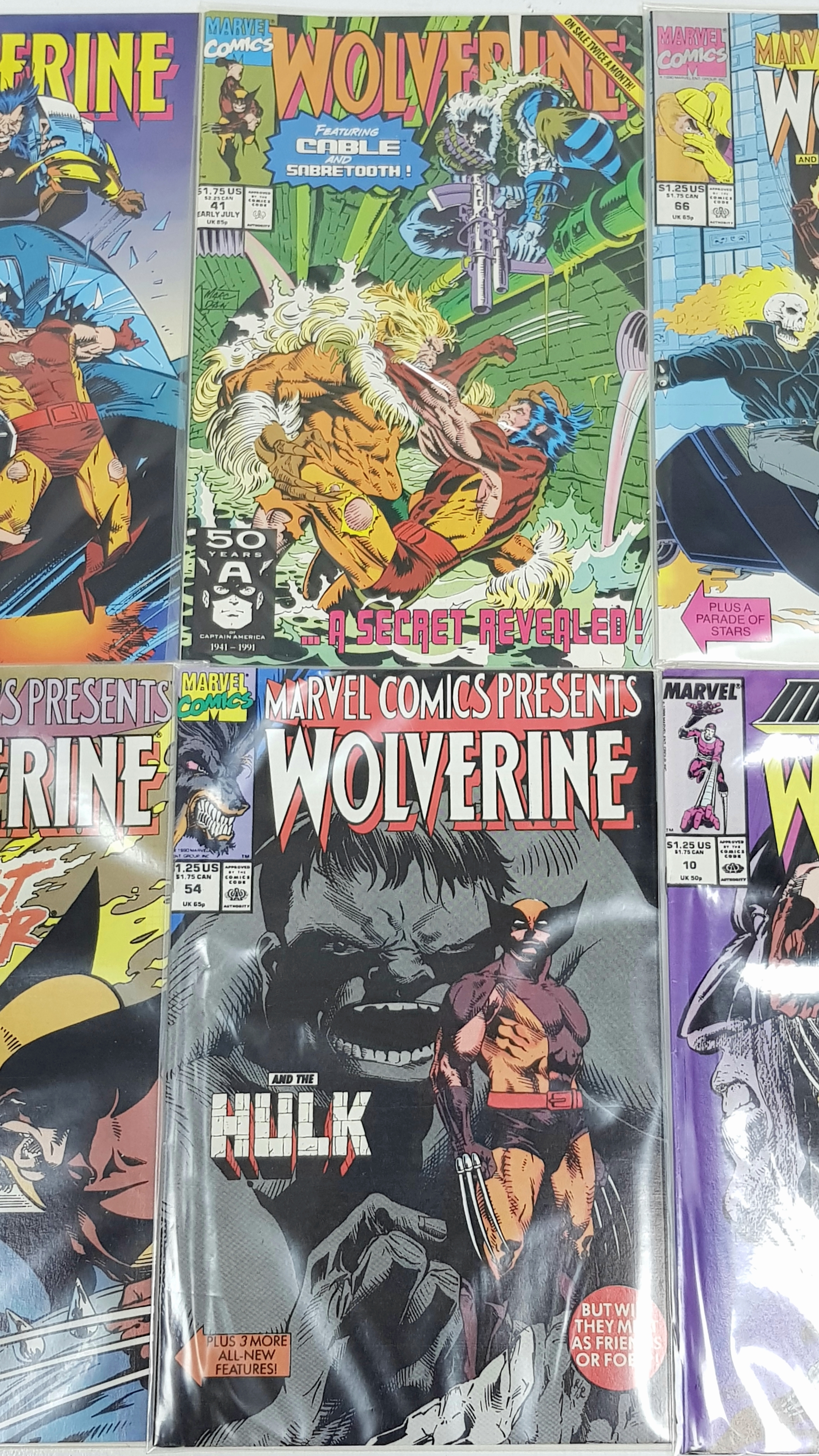 Ten Marvel Wolverine Comics - Most Being in Very Fine to Very Fine Plus Grade. All individually wrapped in plastic. Please refer to photos for finer details.