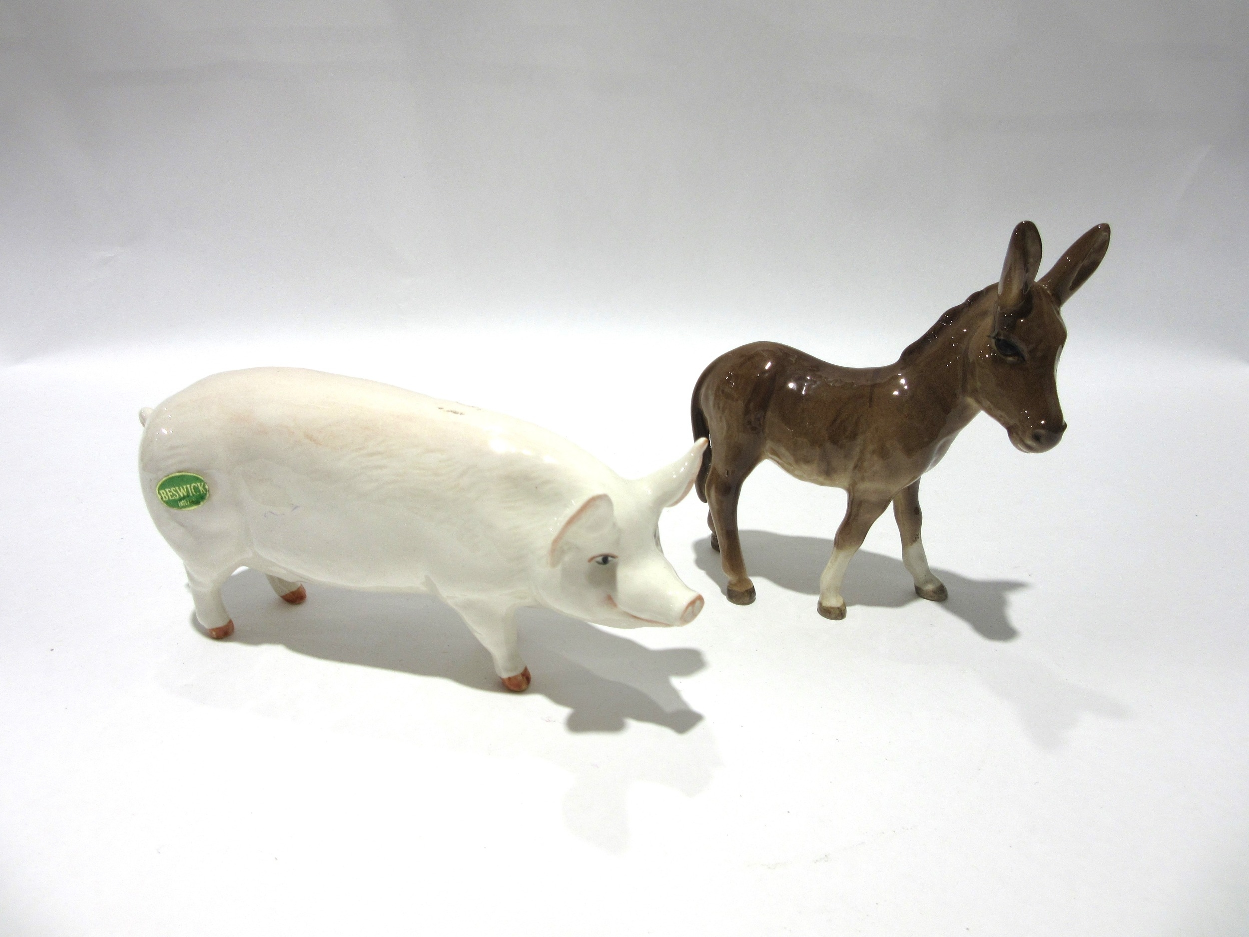 A Beswick Sow Ch. "Wall Queen 40th" in gloss, model no. 1452A together with a Beswick Donkey Foal, model no. 2110 in gloss