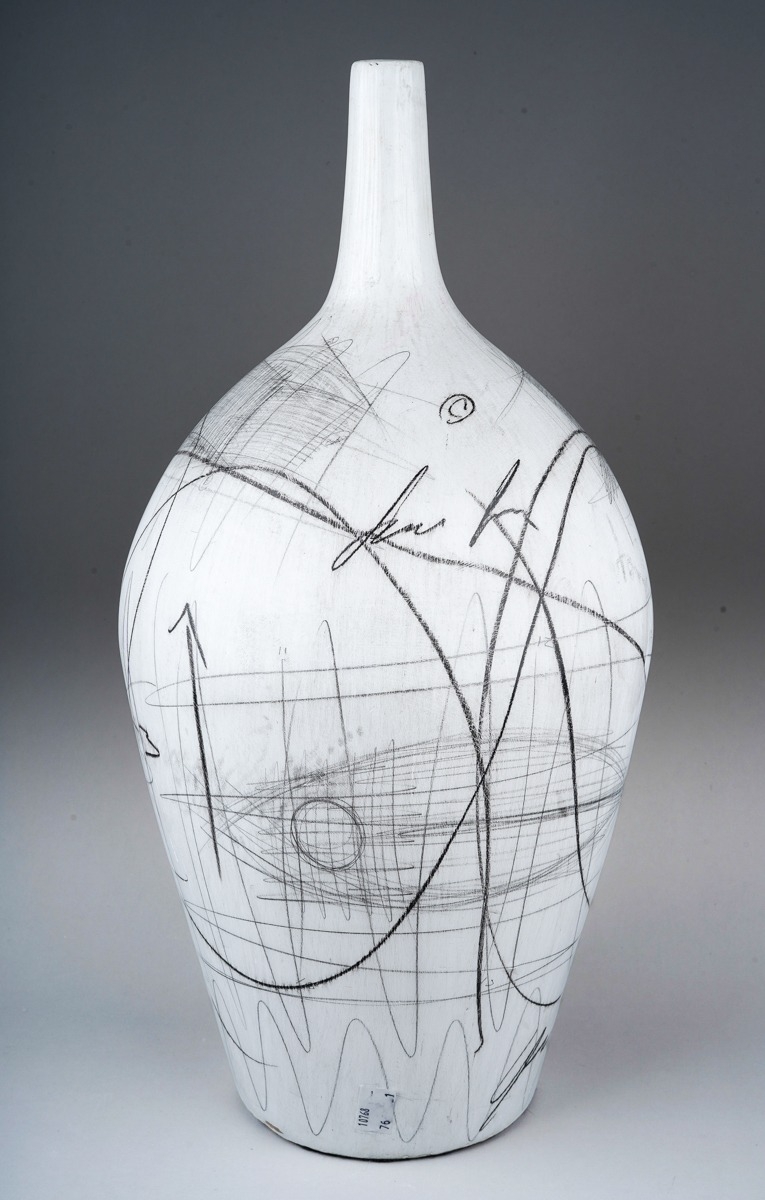 Yuri Zatarain Spanish / Russian (B.1972-) a porcelain ovoid bottle vase decorated with a design from the artist's Sketchbook series, decorated in pencil, signed, labels to the base, height 49cm