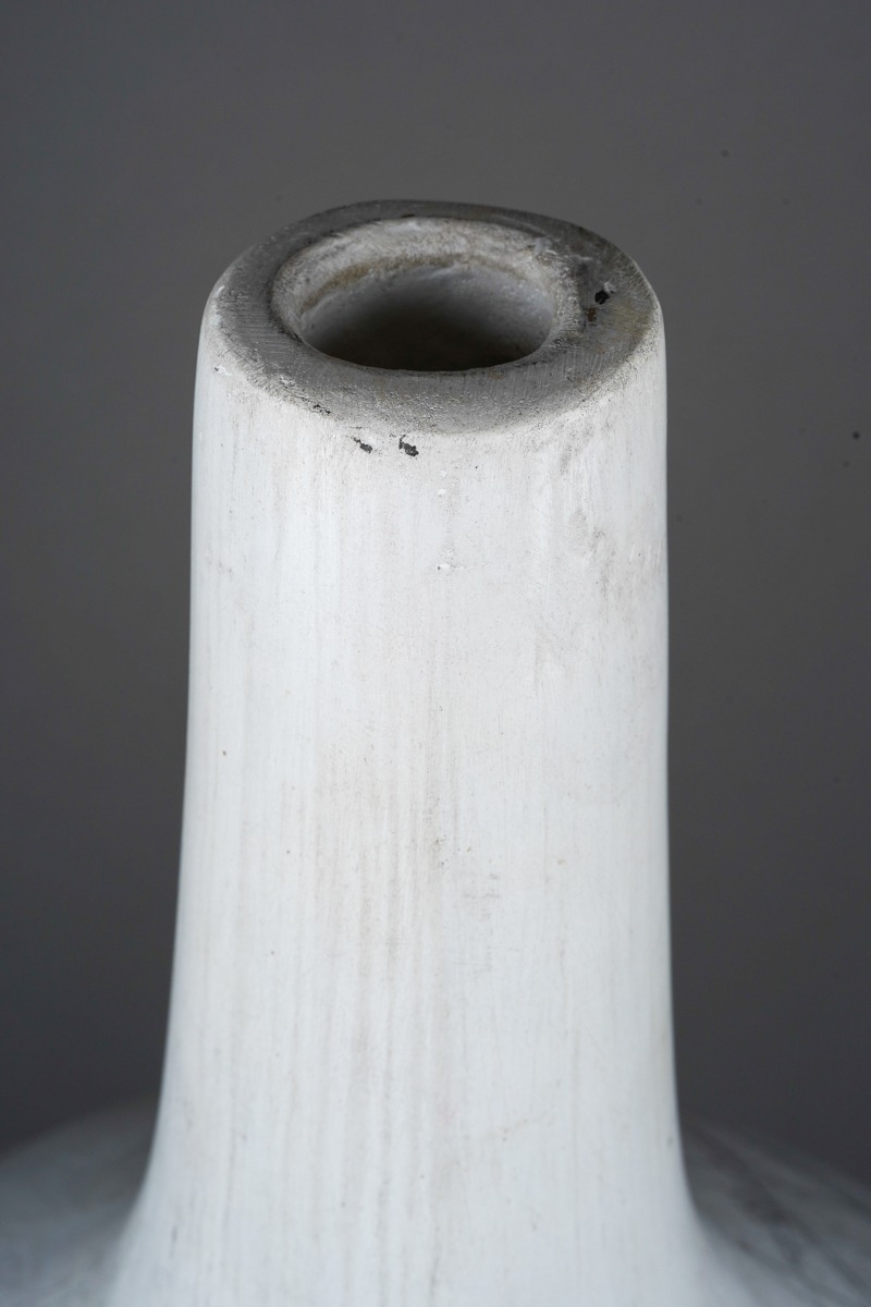 Possible restoration to neck, edge of foot rim is rough in place with a spot lacking glaze, small raised patch towards base.