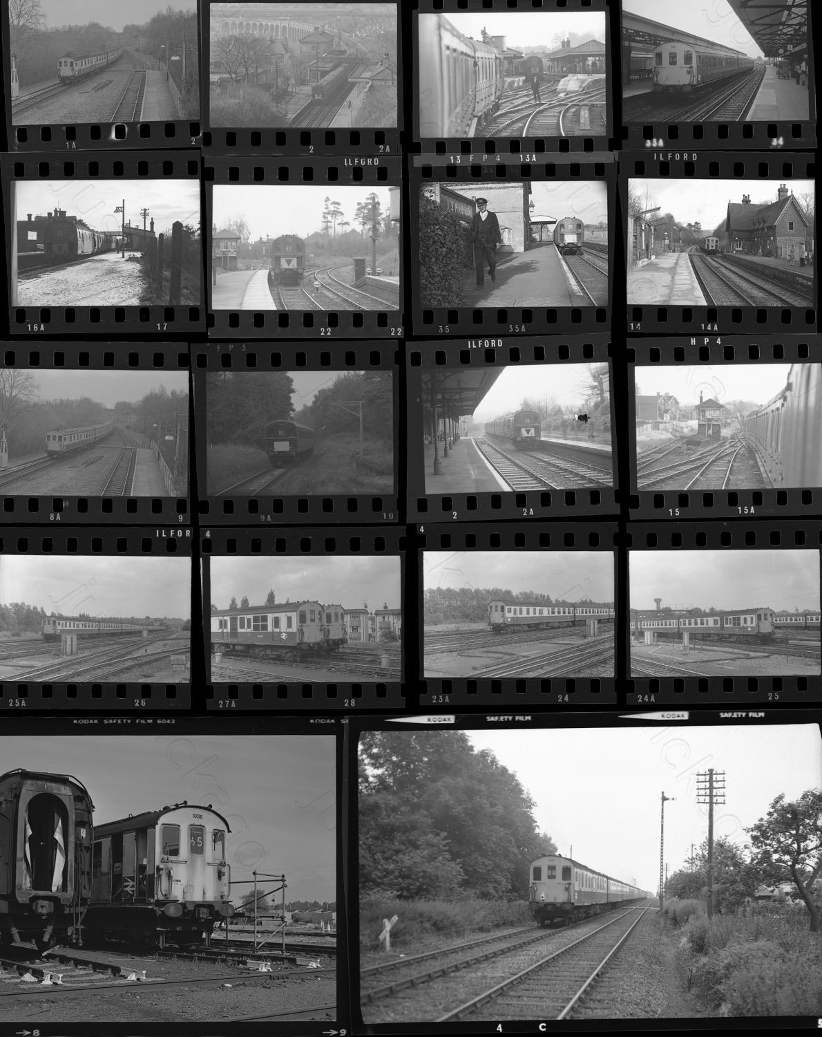 Railway. Modern Traction. Approx. 54, original black & white, individual, 35mm and medium format negatives. Featuring D/EMU's on the Southern Region. Including "Hastings" "Hampshire", "Berkshire" units and 3D East Sussex. Several date from the 1960's, including some taken on the last day of service on the Three Bridges-Groombridge line in 1967. Locations include: Lewes, Eridge, East Grinstead, Eastleigh Works, Oxted, Tunbridge Wells West, Isfield, Buxted and others. Sold with copyright, all captioned (some have no dates), sample illustrated.