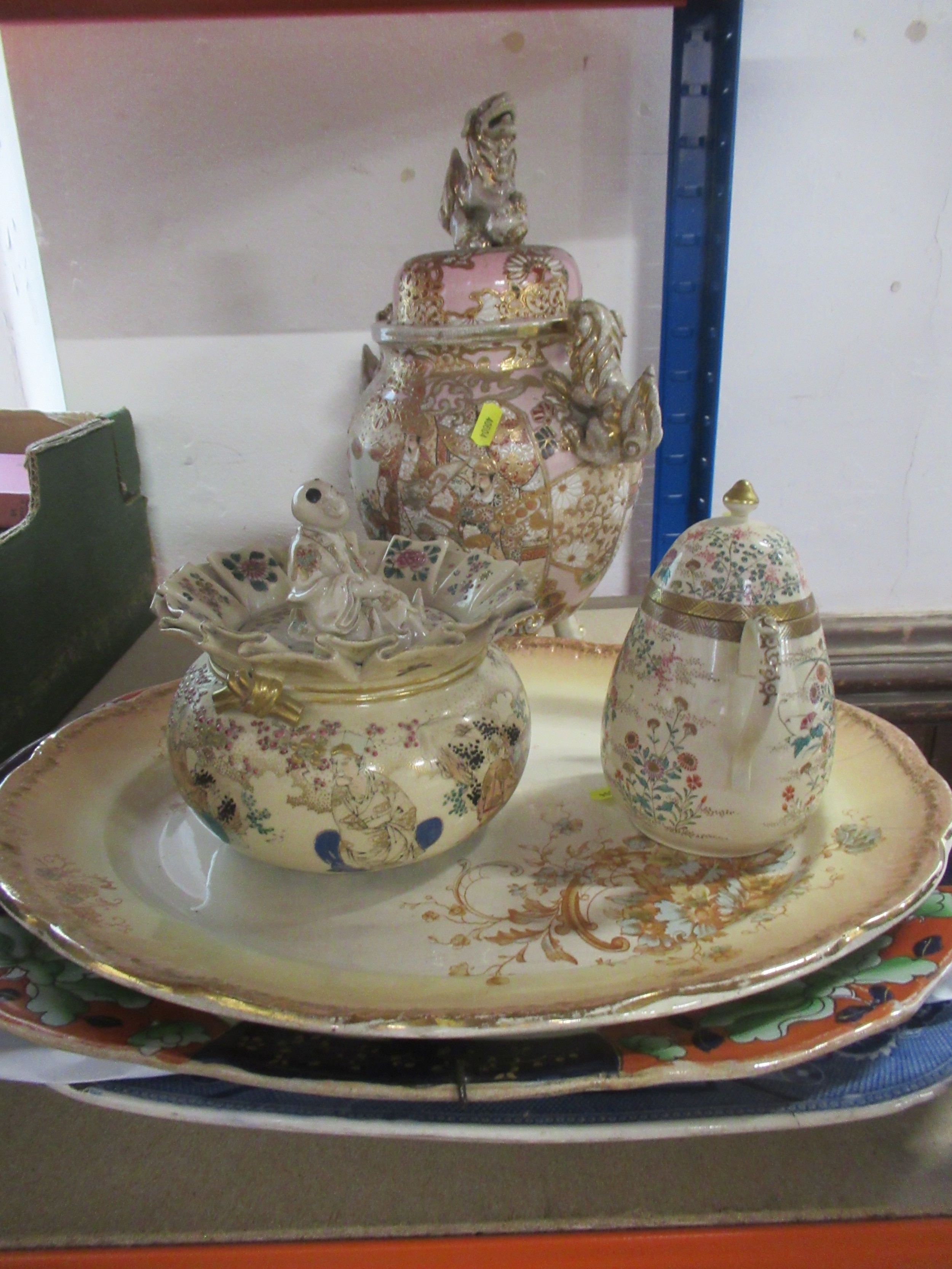 Three meat plates and various Satsuma pieces