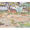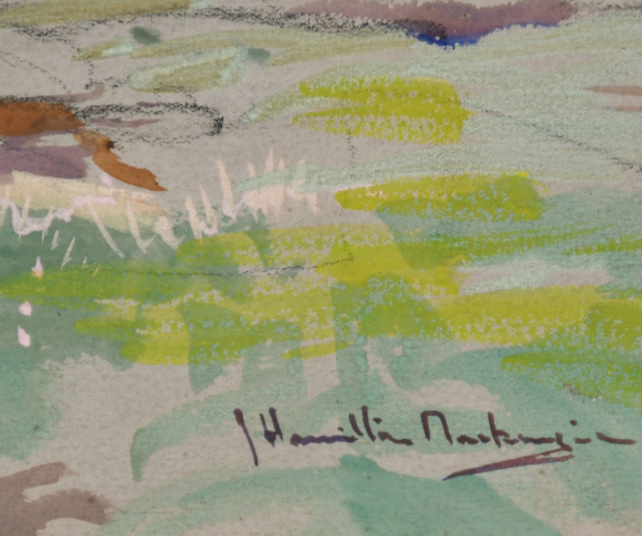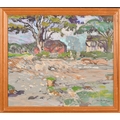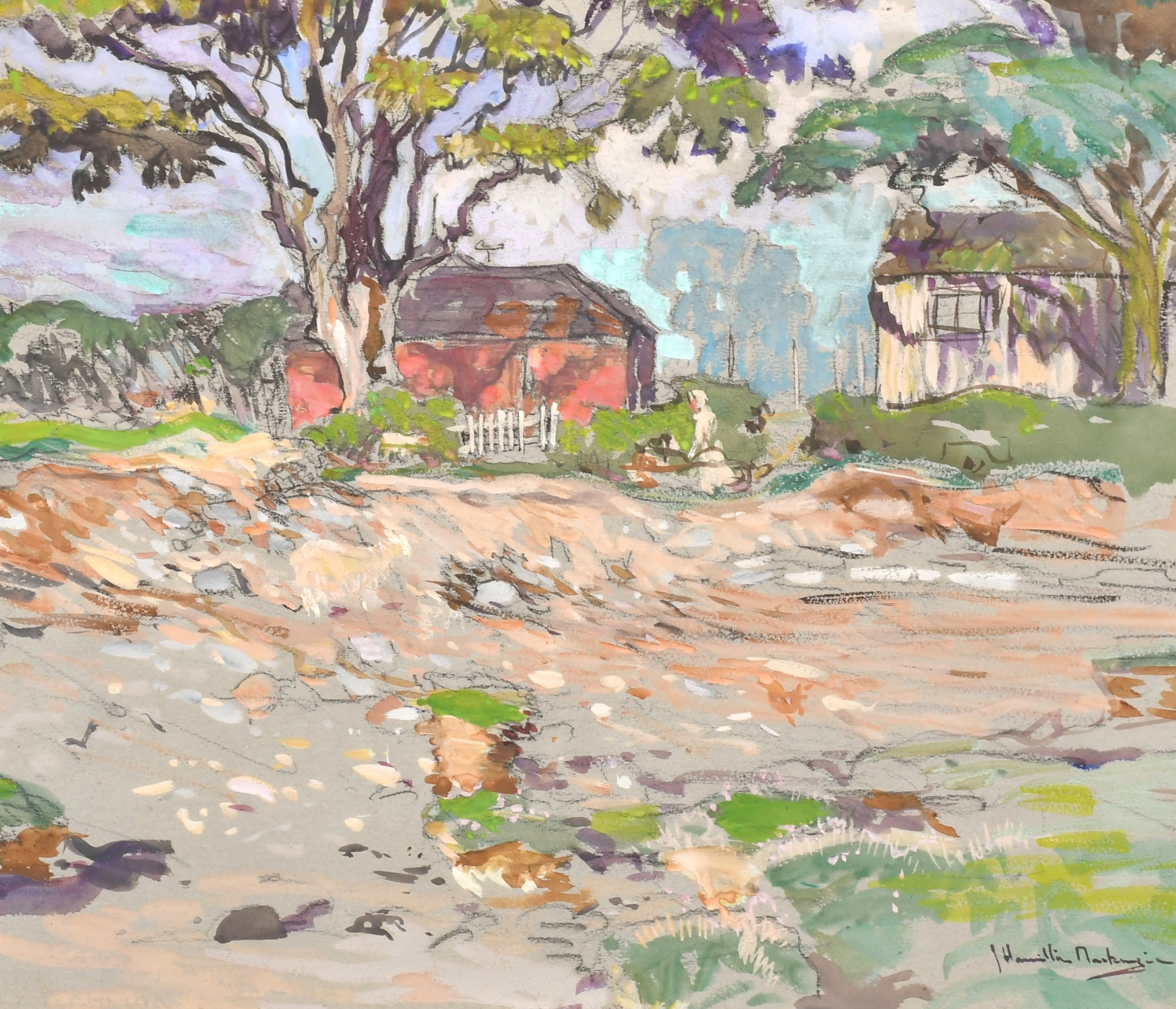 James Hamilton Mackenzie (1875-1926) British. The Barns, Gouache, Signed, 14.5" x 17" (36.8 x 43.2cm)